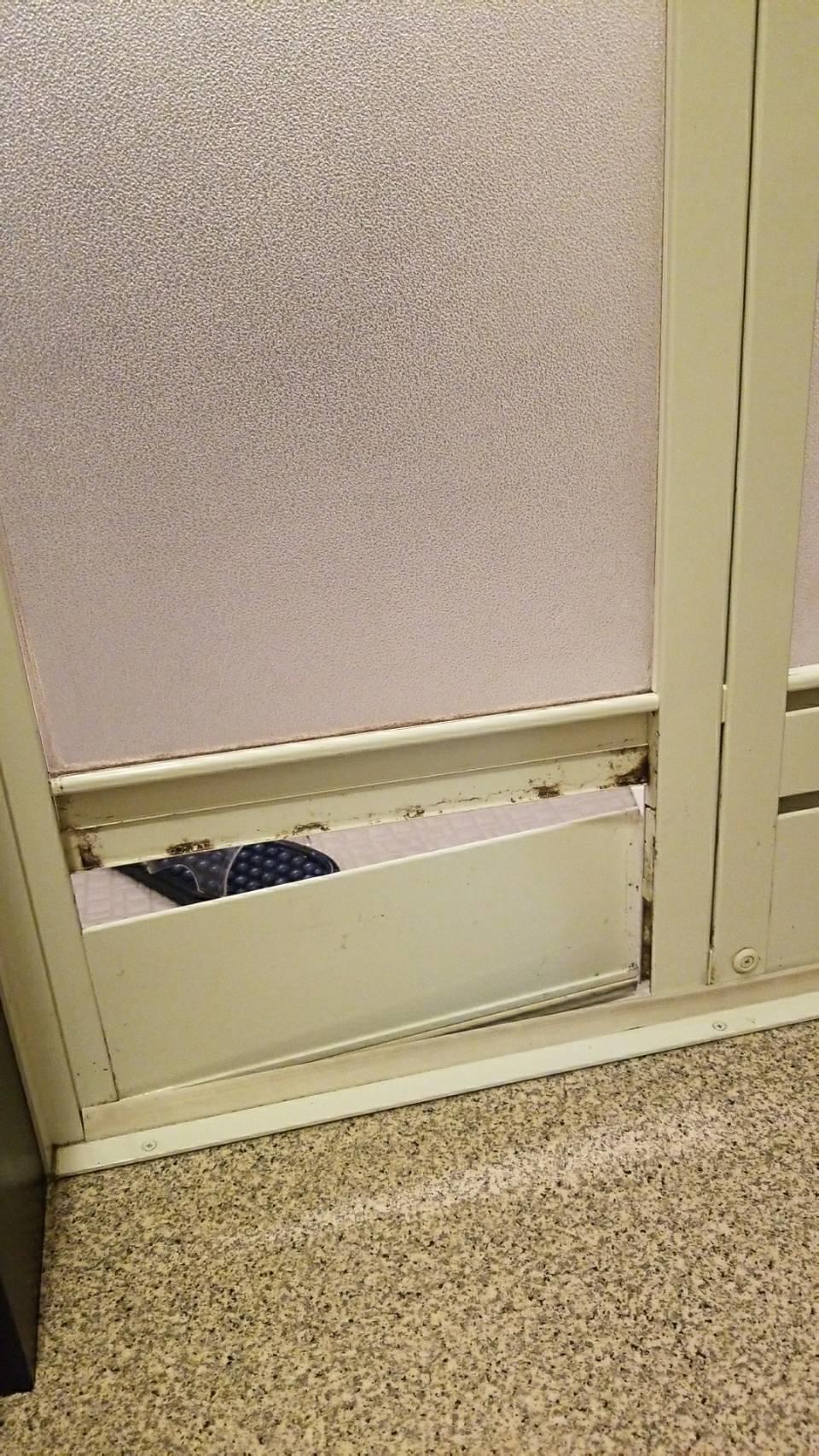 億室扉の下のパネルが外れ、きちんと閉まらなくなったので交換しました。