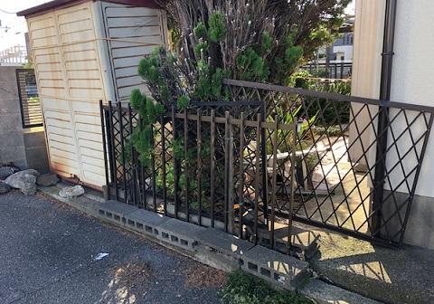 以前はブロックで挟んで建てていたフェンス。 不要になった物置を撤去し、新たにブロックを積み直してフェンスを設置しました。