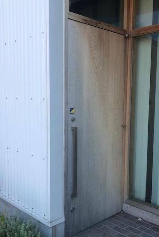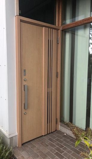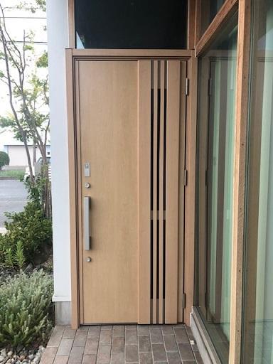 蔭山組、中島倉庫の玄関ドアの交換リフォーム。 リシェントの採光・採風タイプドアに交換しました。