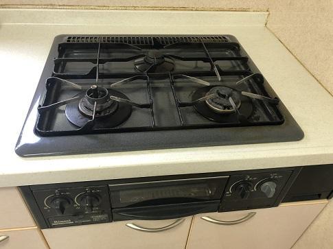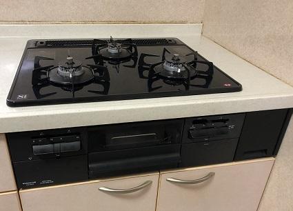 既存のガスコンロを撤去し、新しいものと交換しました。 元のガスコンロに比べ、ごとく周りもスッキリし、ガラストップ面になり お掃除しやすくなりました。