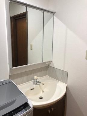 トイレはクッションフロア・壁紙の張り替え。 洗面所はクロスの張り替え・ミラーキャビネットの交換・アクセントパネルを貼りました。 水が飛び、汚れが付きやすい部分にアクセントパネルを貼っておくと、お掃除がラクになり壁紙の傷み具合も違います。