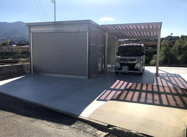 台風時に、色々な物が飛んできたので、傷んだ外壁を修繕したい。 風の強い場所なので、耐風性に優れているカーポートとガレージを設置したいとお客様からご要望がありました。 外壁の漆喰塗り・杉板の張り替えをし、雨戸の鏡板交換、ガレージ部はコンクリートを打ち、耐風性に優れたカーポートと物置を 設置しました。また、玄関前に門柱を建て、インターホンと表札を設置しました。