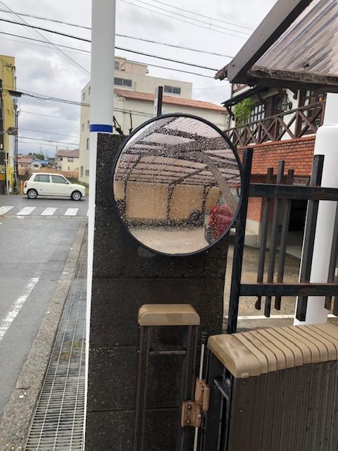 駐車場から車を出し入れするときにえづらいので、出入り口にカーブミラーを取り付けました。 良く見えるようになったとお喜び頂きました。