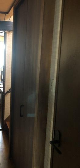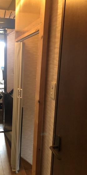 既存のアコーディオンカーテンを撤去し、折れ戸を設置しました。