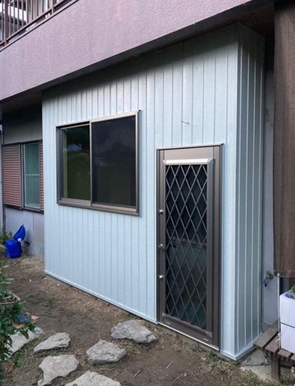 庭に隣接する軒下を利用し、増築。猫ちゃんの為にお部屋を作りました! 既存の部屋から増築部分に床をフラットで繋げ、行き来出来るように。 外から出入り出来るように、勝手口ドアも取り付けました!