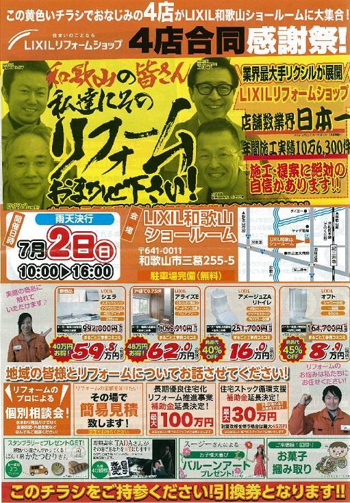 一覧へ戻る黄色いチラシでおなじみの和歌山市内4店合同イベント!