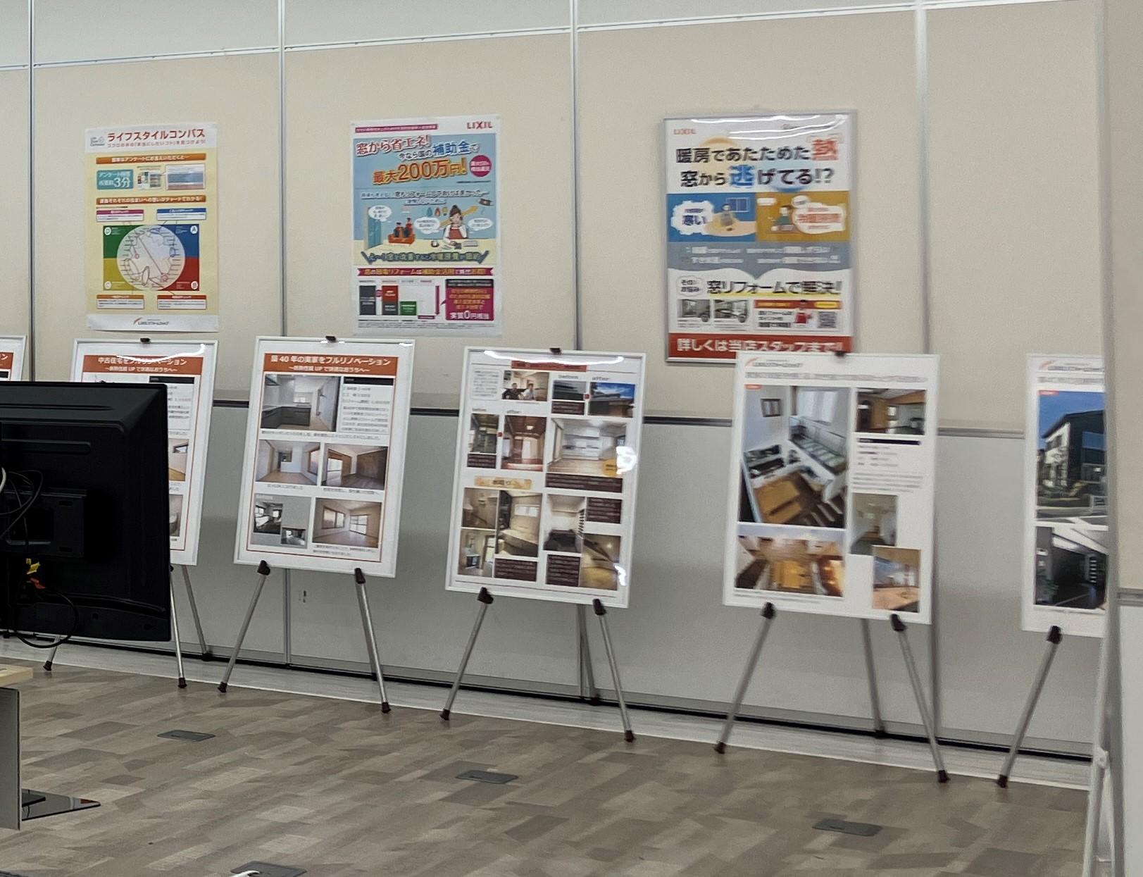 当社施工のリフォーム実例パネルなども展示しています。