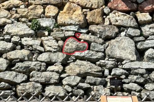 写真の石垣の中に「夫婦ハートの石」と呼ばれている大小2つのハートがあります。