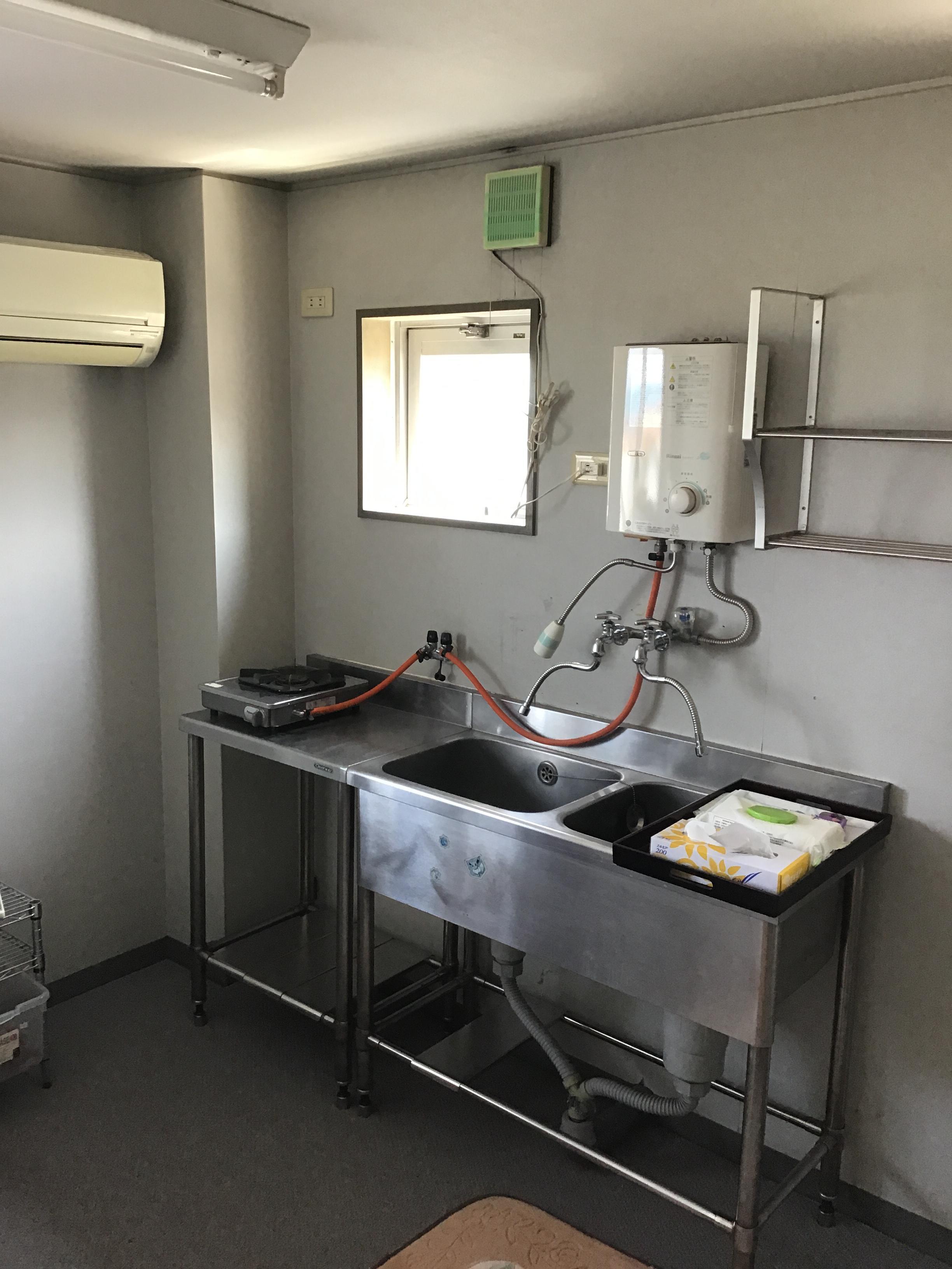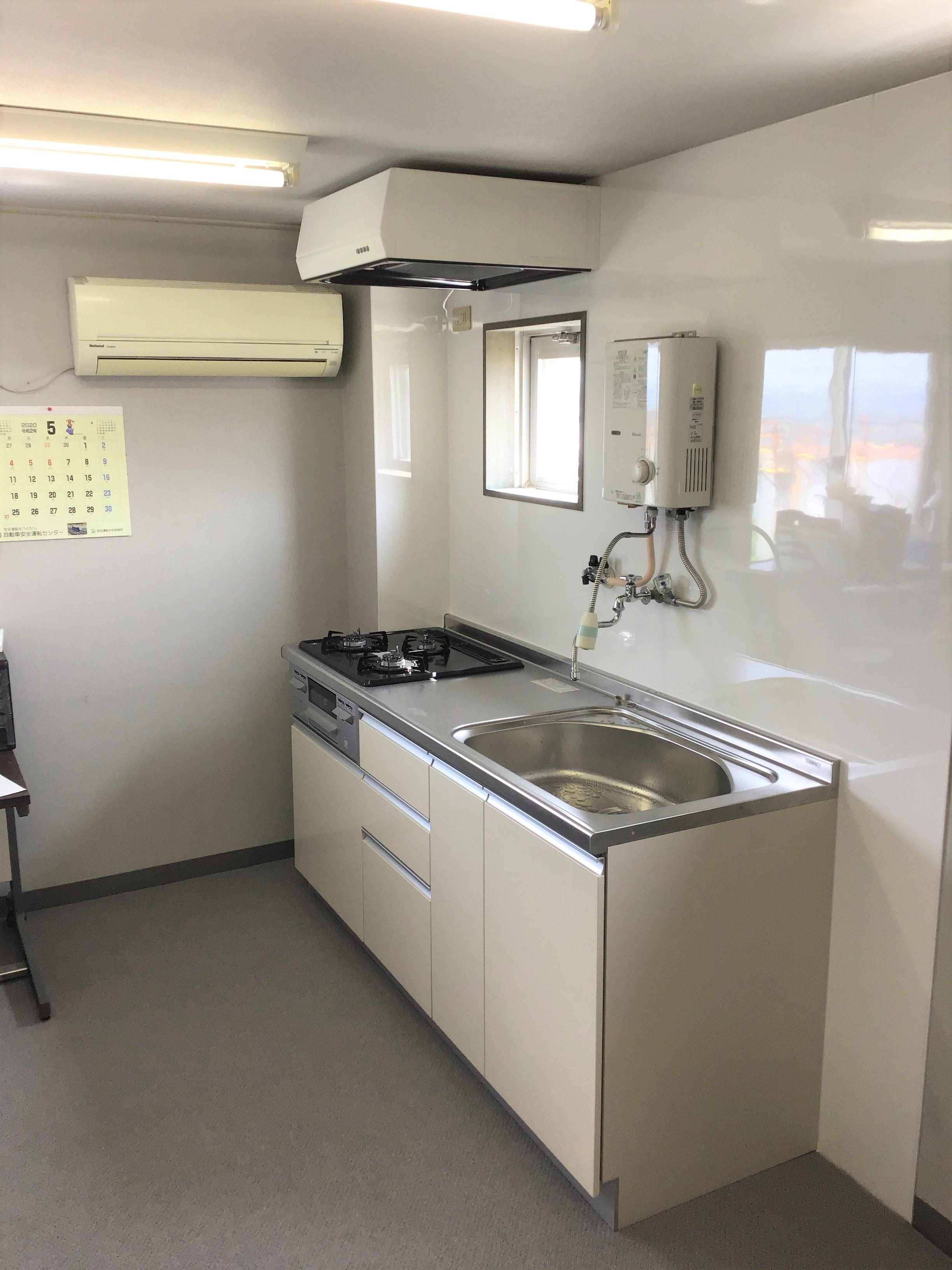 「業務用で見た目も悪いので家庭用のキッチンを付けてほしい、湯沸かし器はそのまま使いたい、換気扇も大きなタイプに替えてほしい。お店の定休日に1日で取替を完了させてください」とのご要望でした。