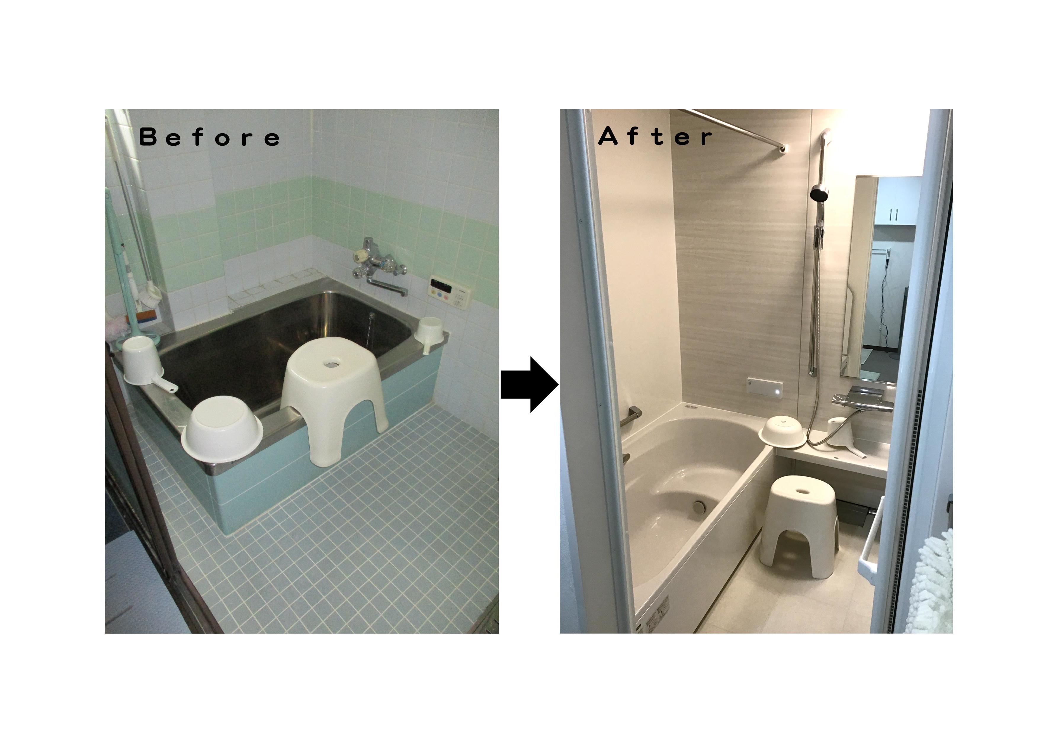 「キッチンは壁で囲われていて暗く狭い感じがイヤなので広く間取り変更したい。浴室はタイルで寒い」とのご相談でした。