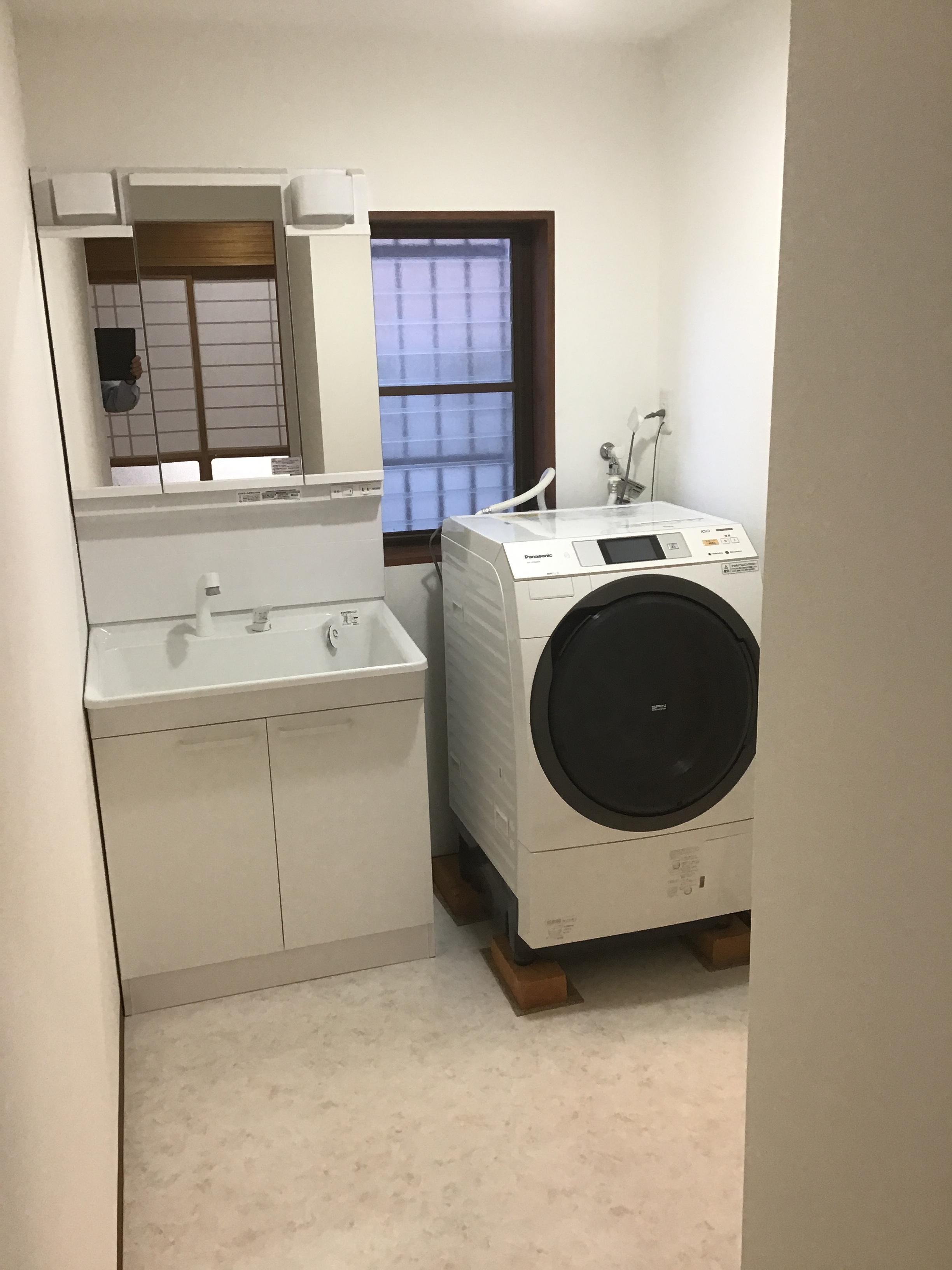 間仕切りを開放的なLDに変更し、水廻り設備機器は、新しいものに入れ替えました。また、洗面脱衣所は、入り組んでいた設備を一面にかためて使い広く使いやすくしました。