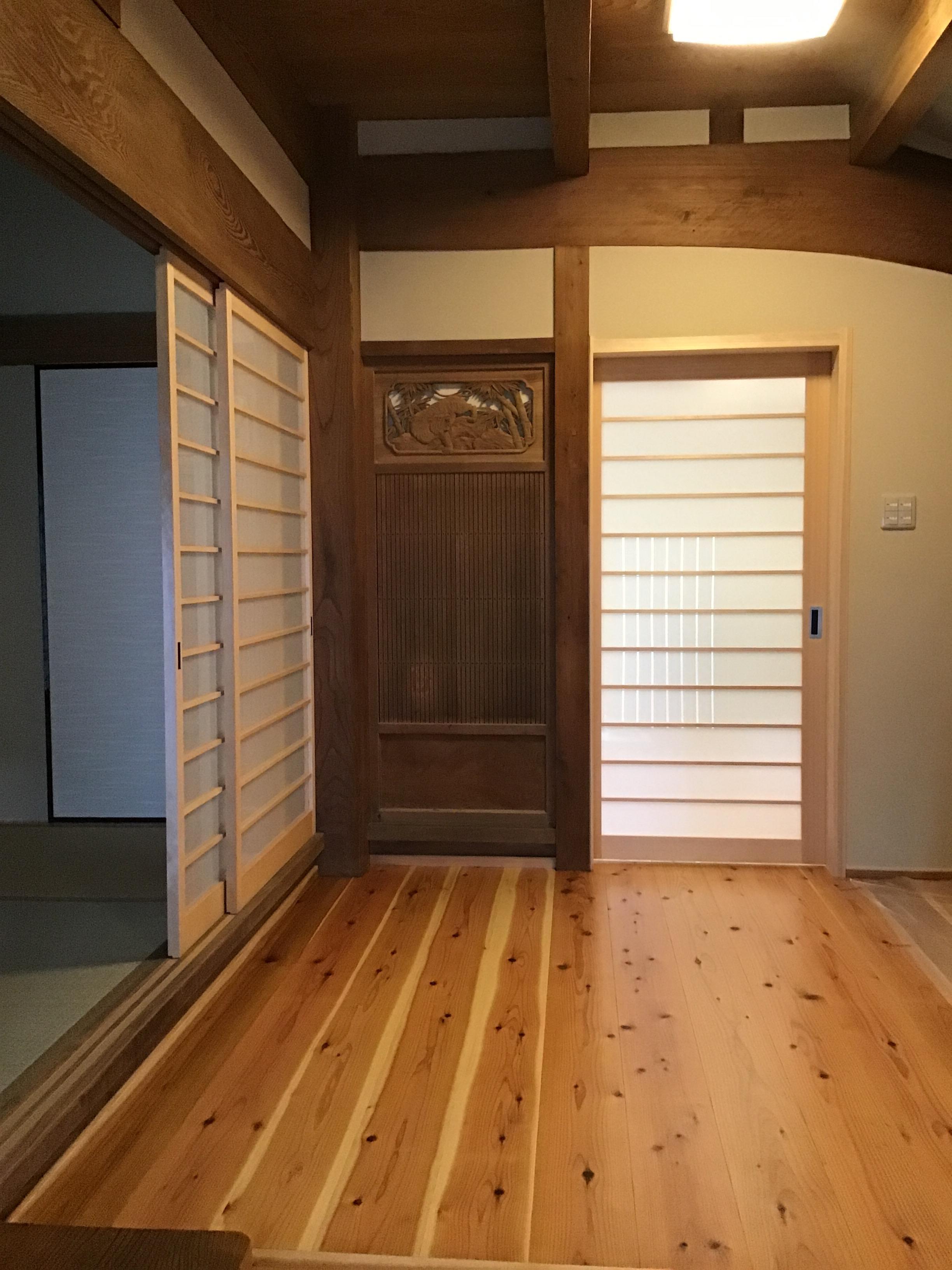 築70年の家だったので、新築かリフォームか悩みましたが、歴史と思い出のある大黒柱や梁・欄間などを残したいと思いリフォームにしました。70年分の物を処分・移動は考えただけでも大変でしたが、子供たちの後押しもあったおかげで乗り切れました。リフォーム中は、「毎日工事がここまでできたんや~、出来上がったらこんなんしよう」とか想像したりして楽しかったです。住み心地もよく快適に暮らせています。この前、孫が泊まりにきてくれたとき「おじいちゃん家キレイになったー!」と喜んでくれました(*^_^*)