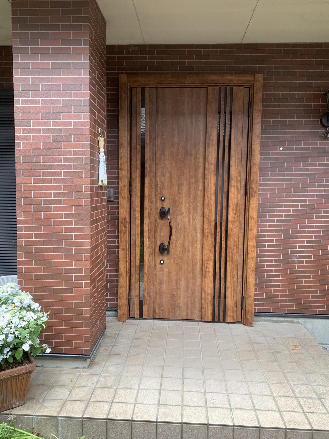 玄関ドアは壁を壊さずに、今のドア枠の上から新しい枠をかぶせるカバー工法で施工。