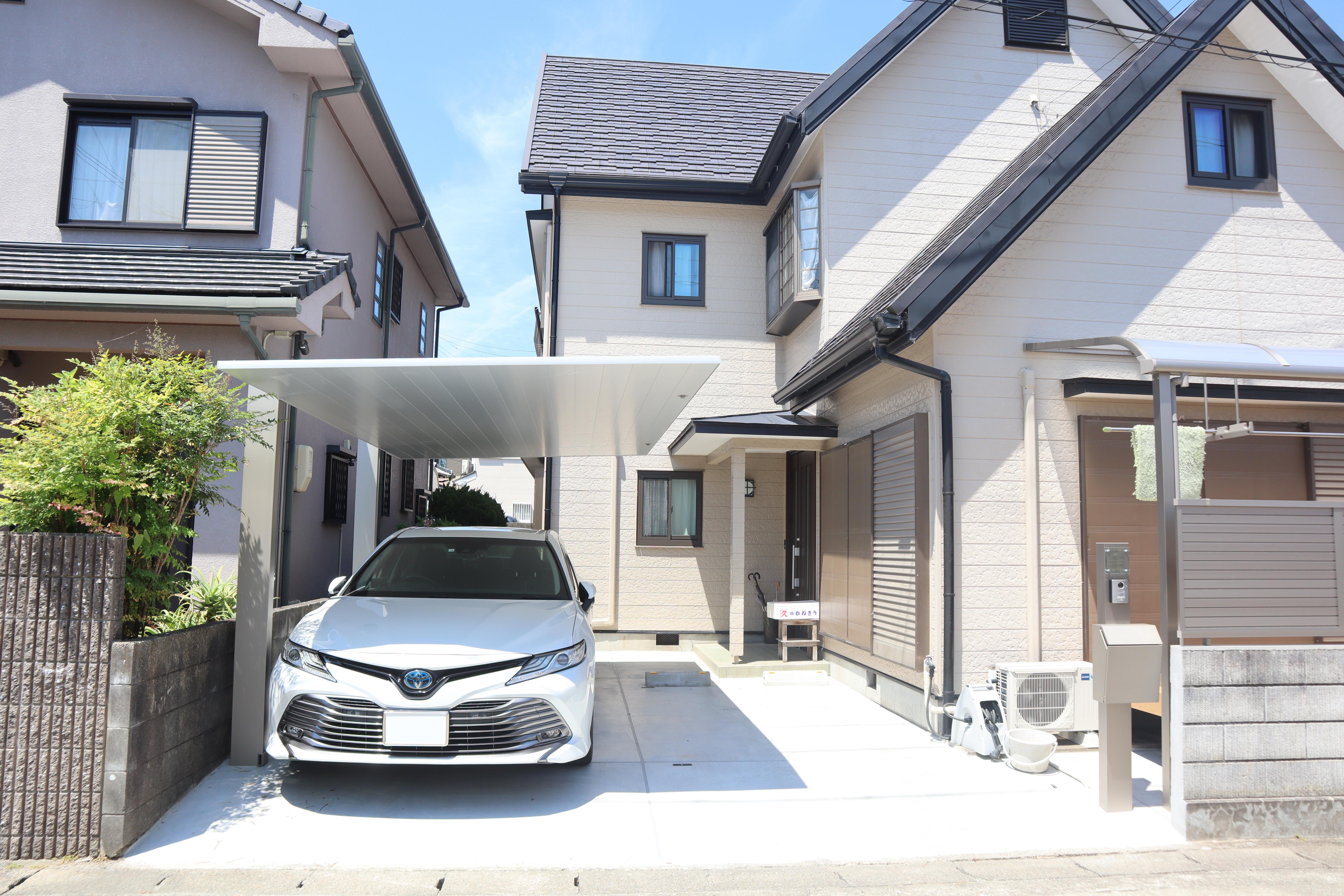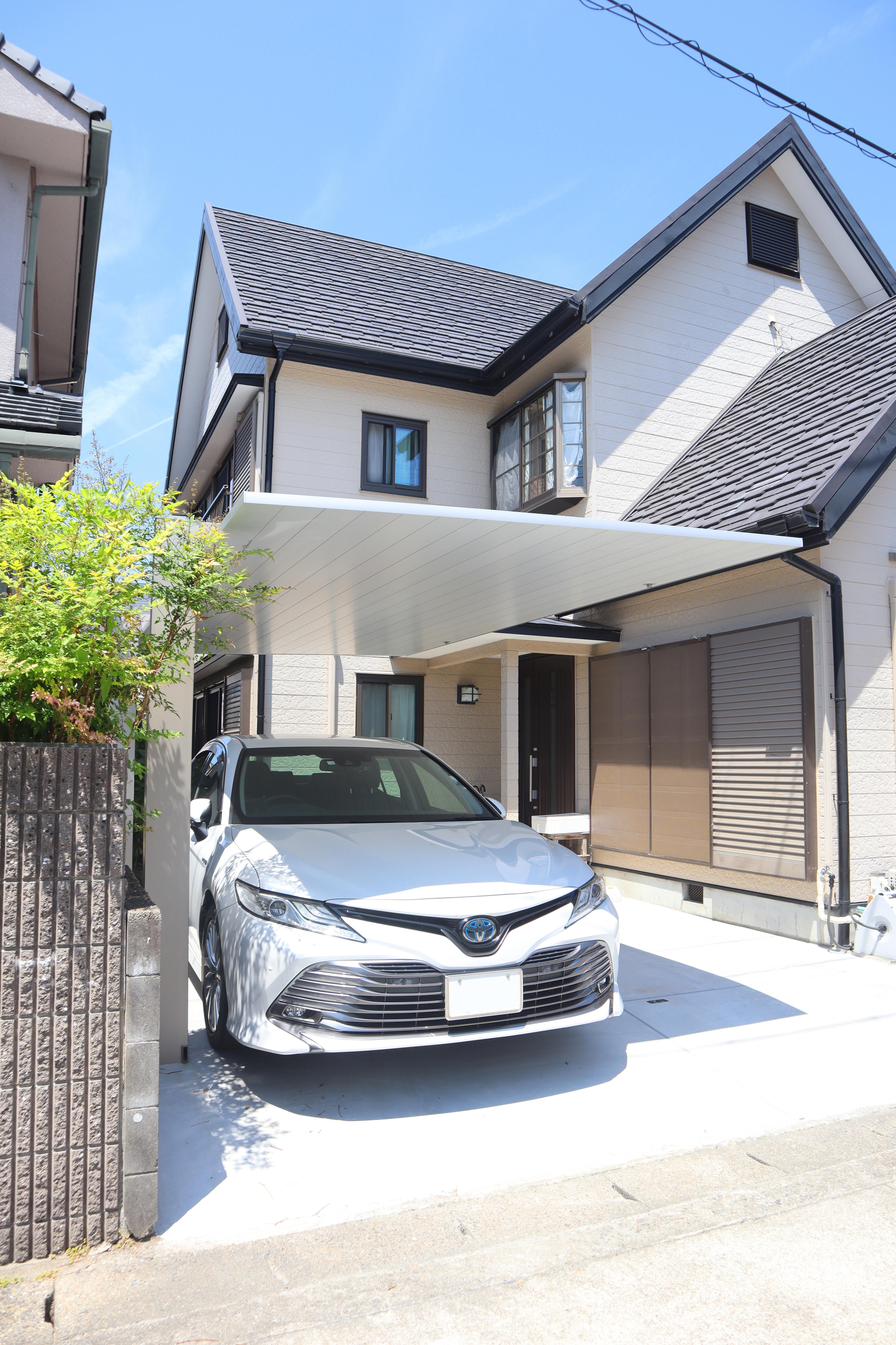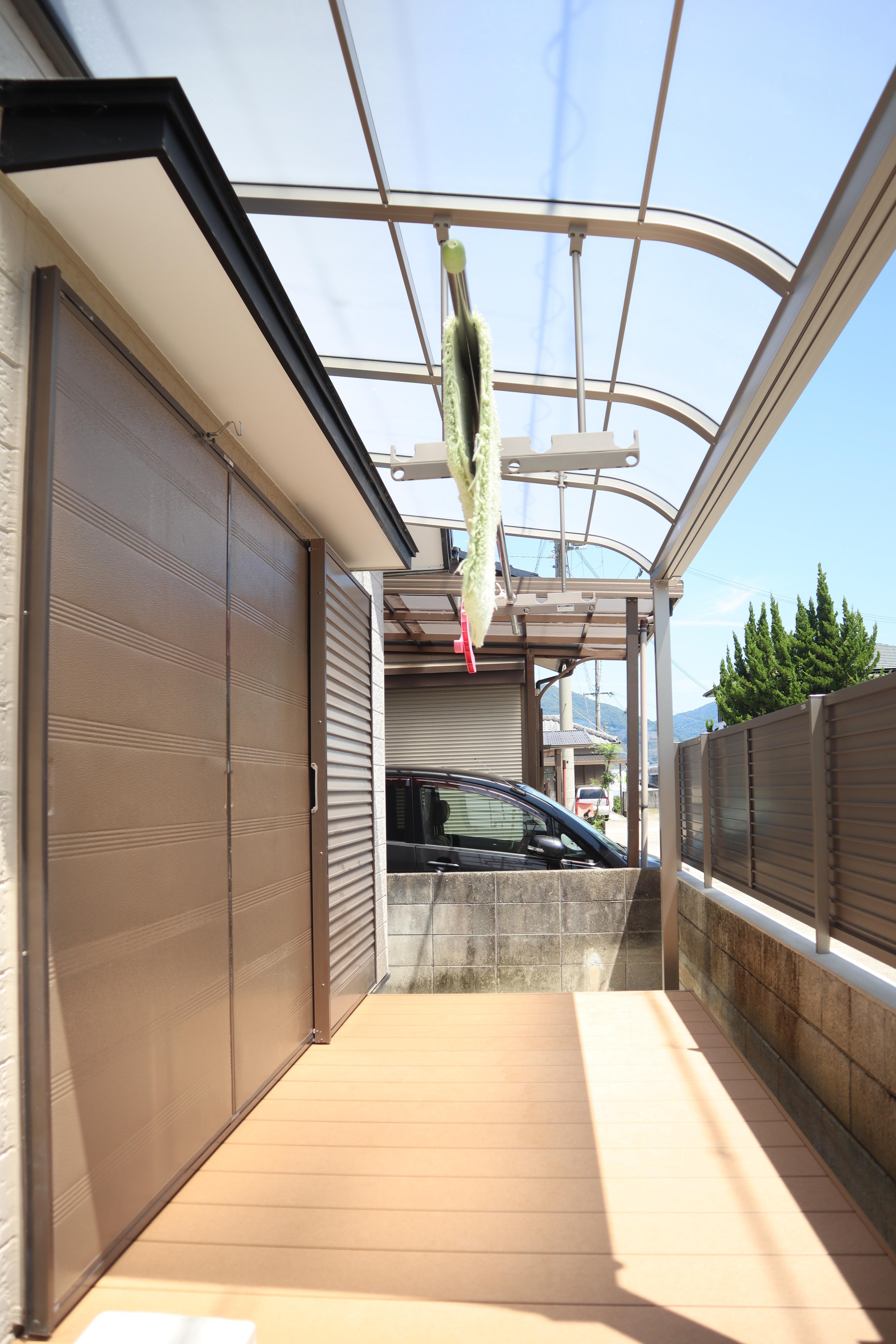 スマートなデザインのカーポートと、物干しが楽になるデッキ&テラスを新設しました。