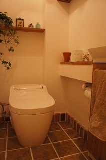 設備は最新のトイレ、パナソニックのアラウーノを入れました。真っ白い色とシンプルなデザインが気に入り取り付けたものです。