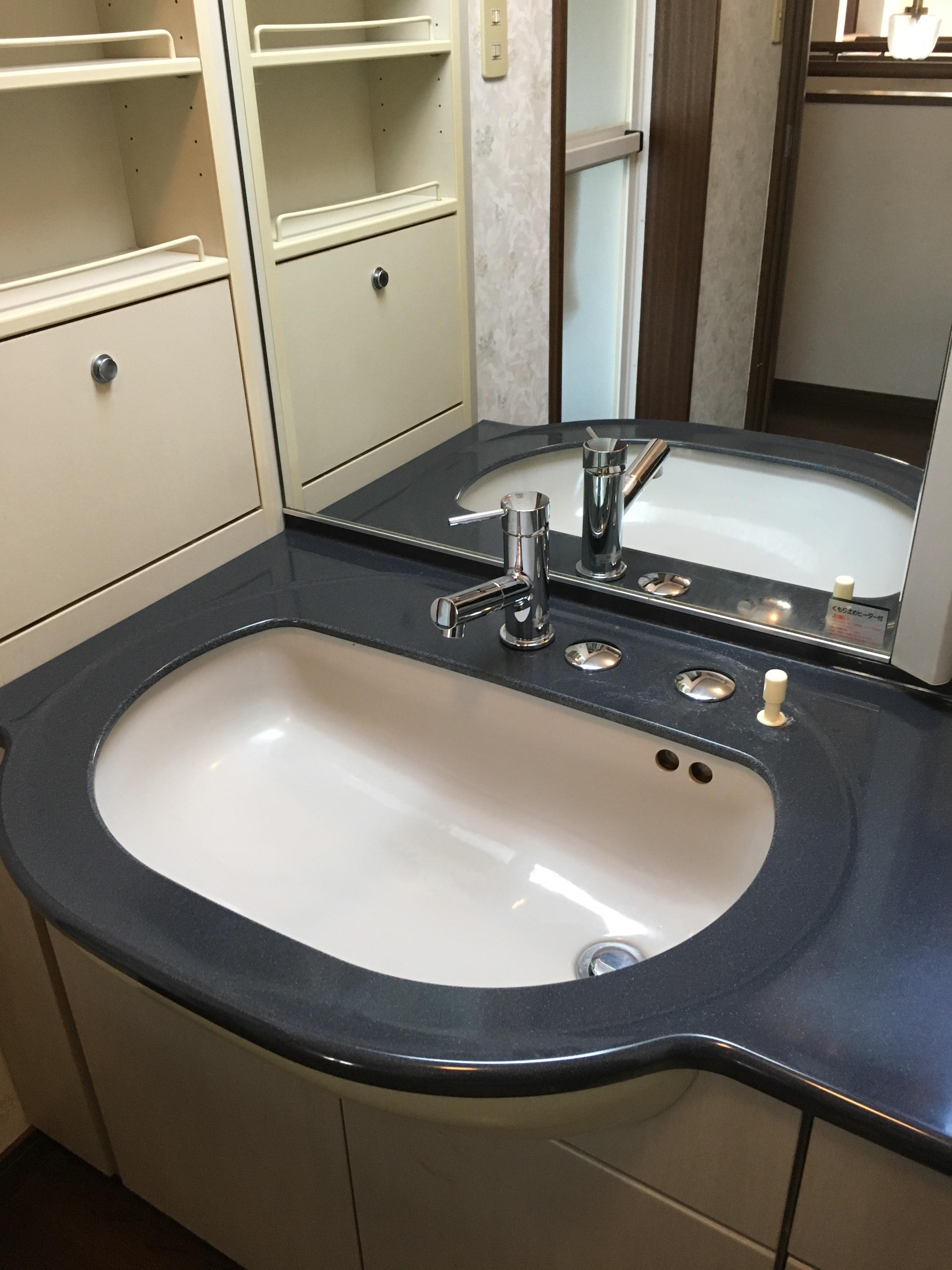 洗面化粧台全部ではなく、水栓のみの簡単交換。