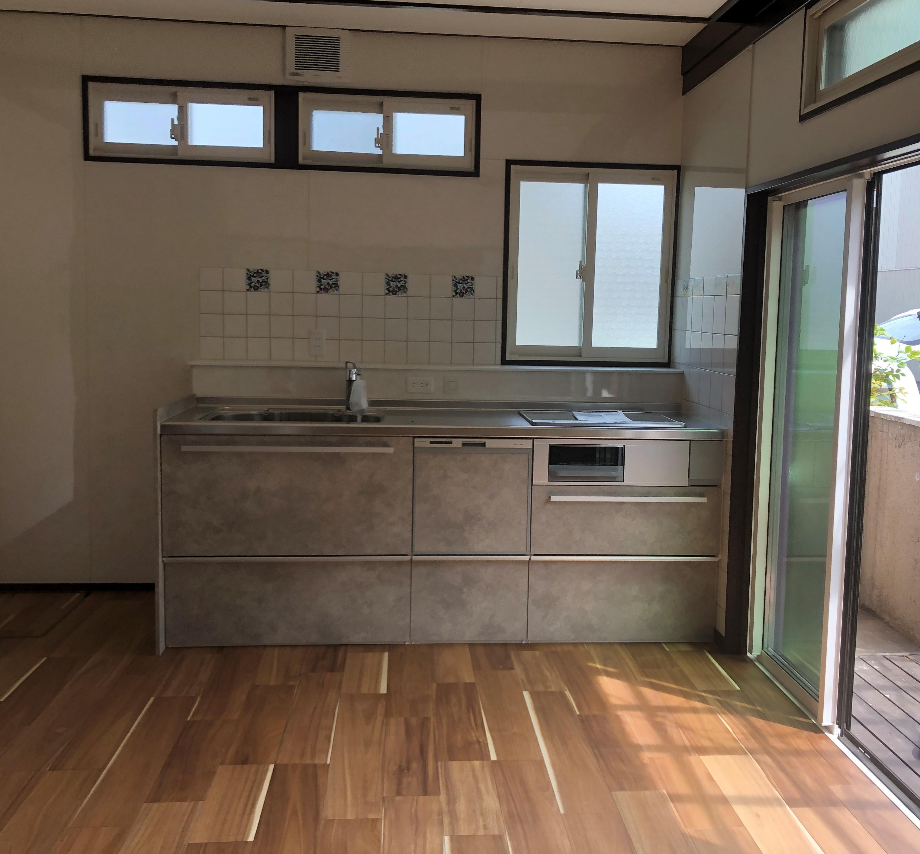 「冬を暖かく過ごしたい」というお客様のご要望のもと、床暖房の敷設や新たな浴室の設置させていただくことで寒さ対策はバッチリとなりました。 また、足元までしっかり収納できるたっぷりの収納スペースを持ち、キズがつきにくい高機能なシンクを兼ね備えた、スッキリとしたデザインのキッチンも設置しました。 とても素敵な空間になり、お客様に満足していただきました。