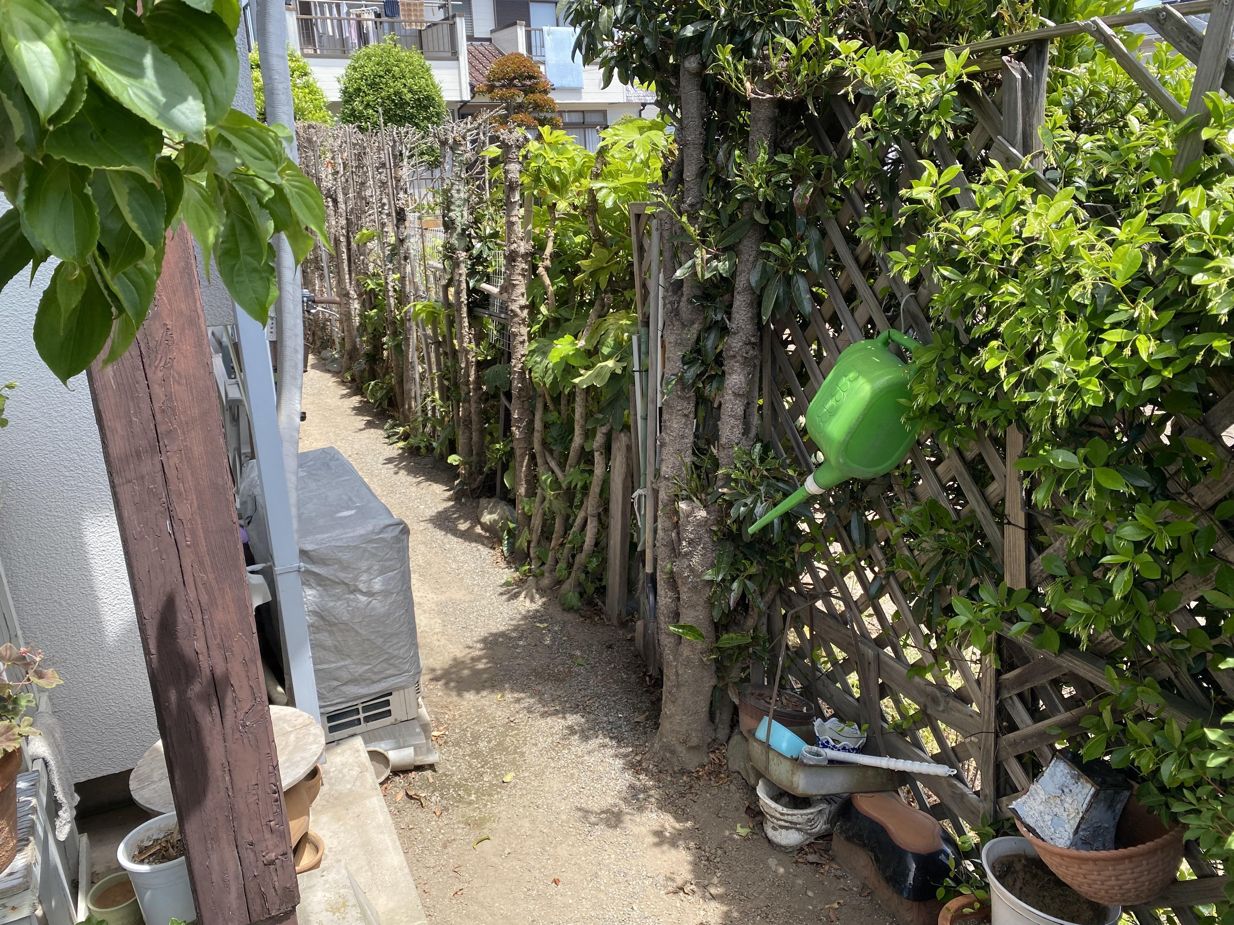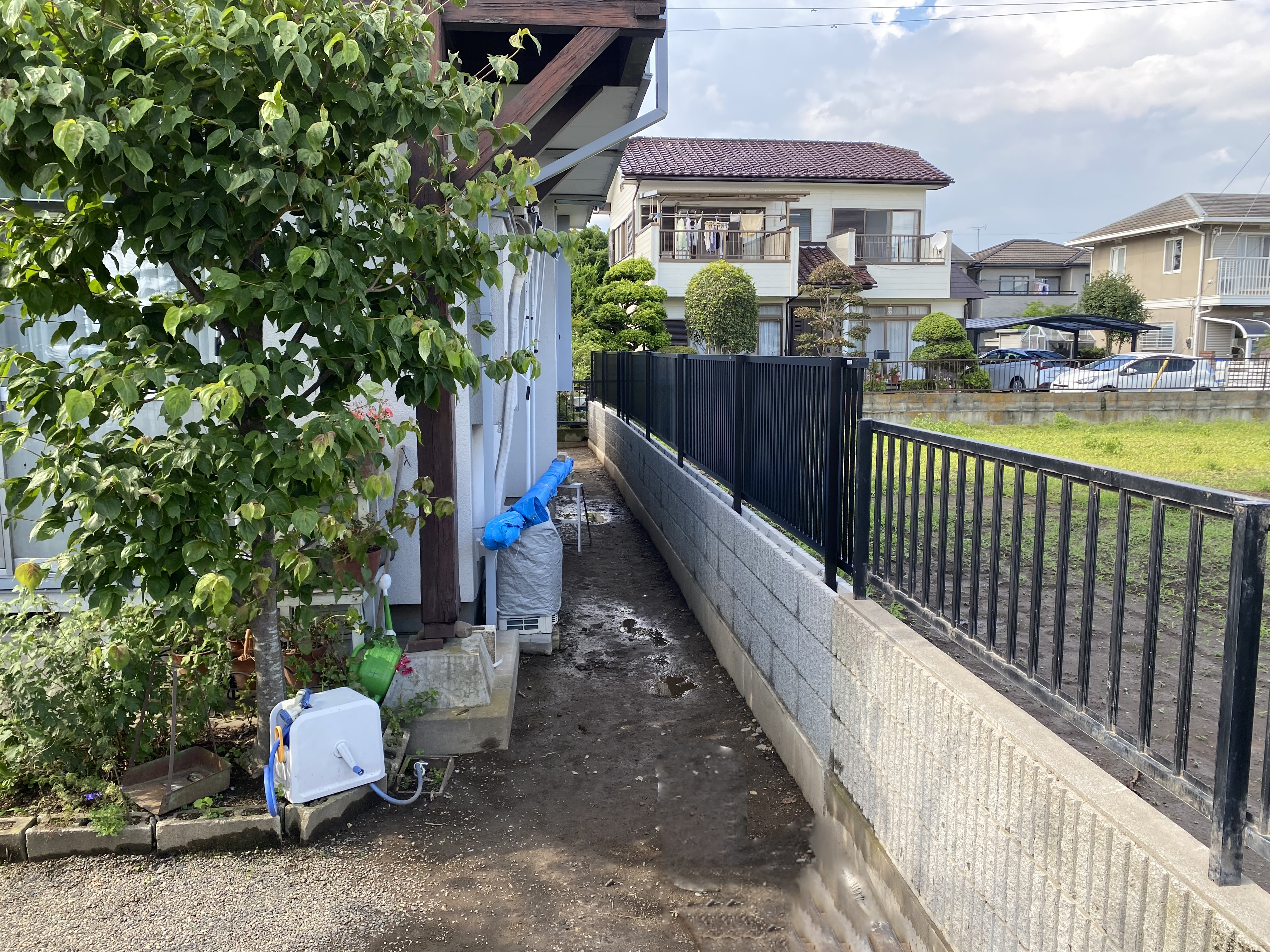 植物が巻き付いていたフェンスの部分は、植物を全部取り除くことでスッキリしました。 また、隣の木が生えていた部分は、木を抜いて新たにフェンスを設置することで、隣地との境界線がよりハッキリとしました。 また、敷地内の侵入も防げるので防犯性も上がりました。
