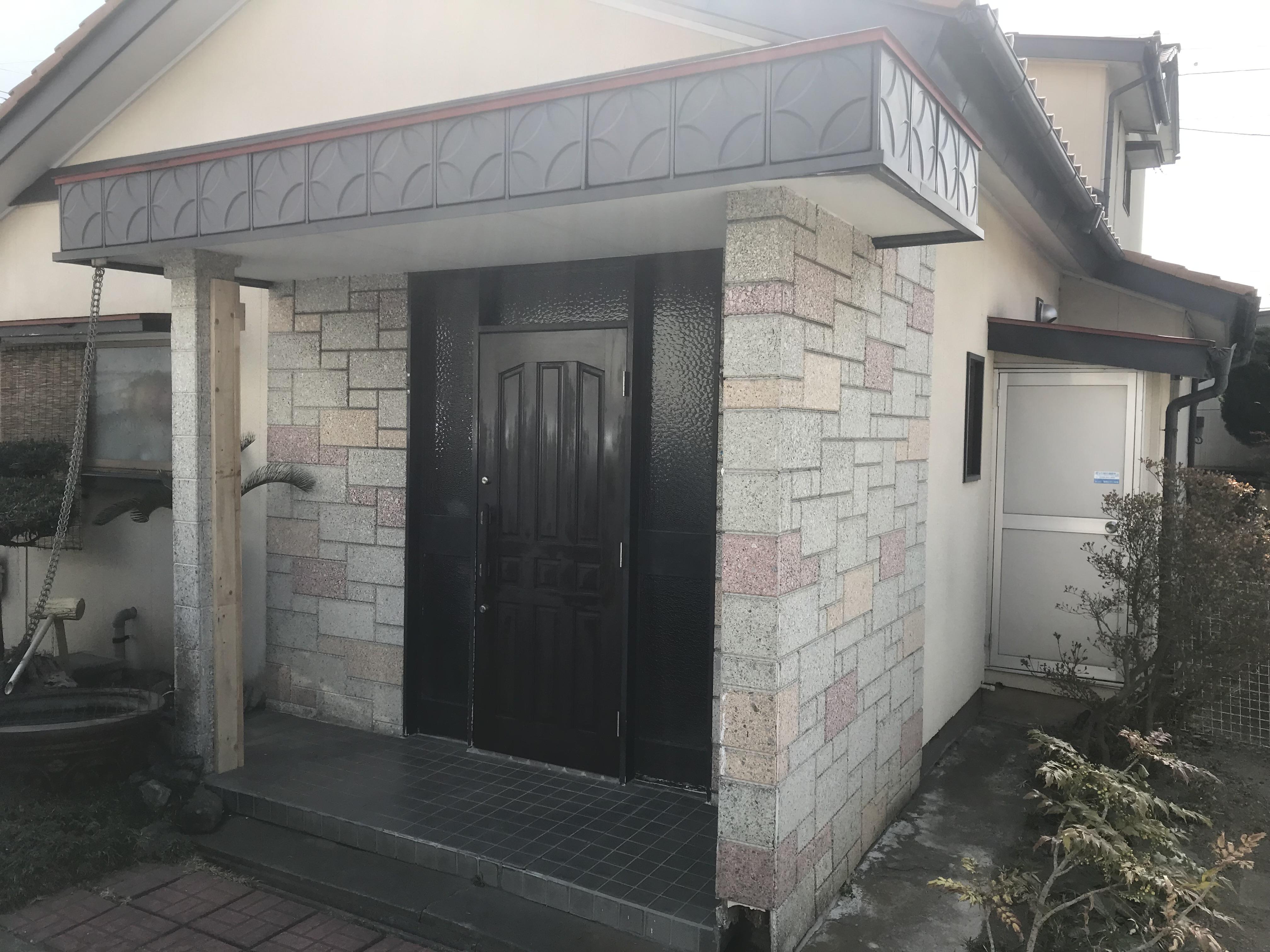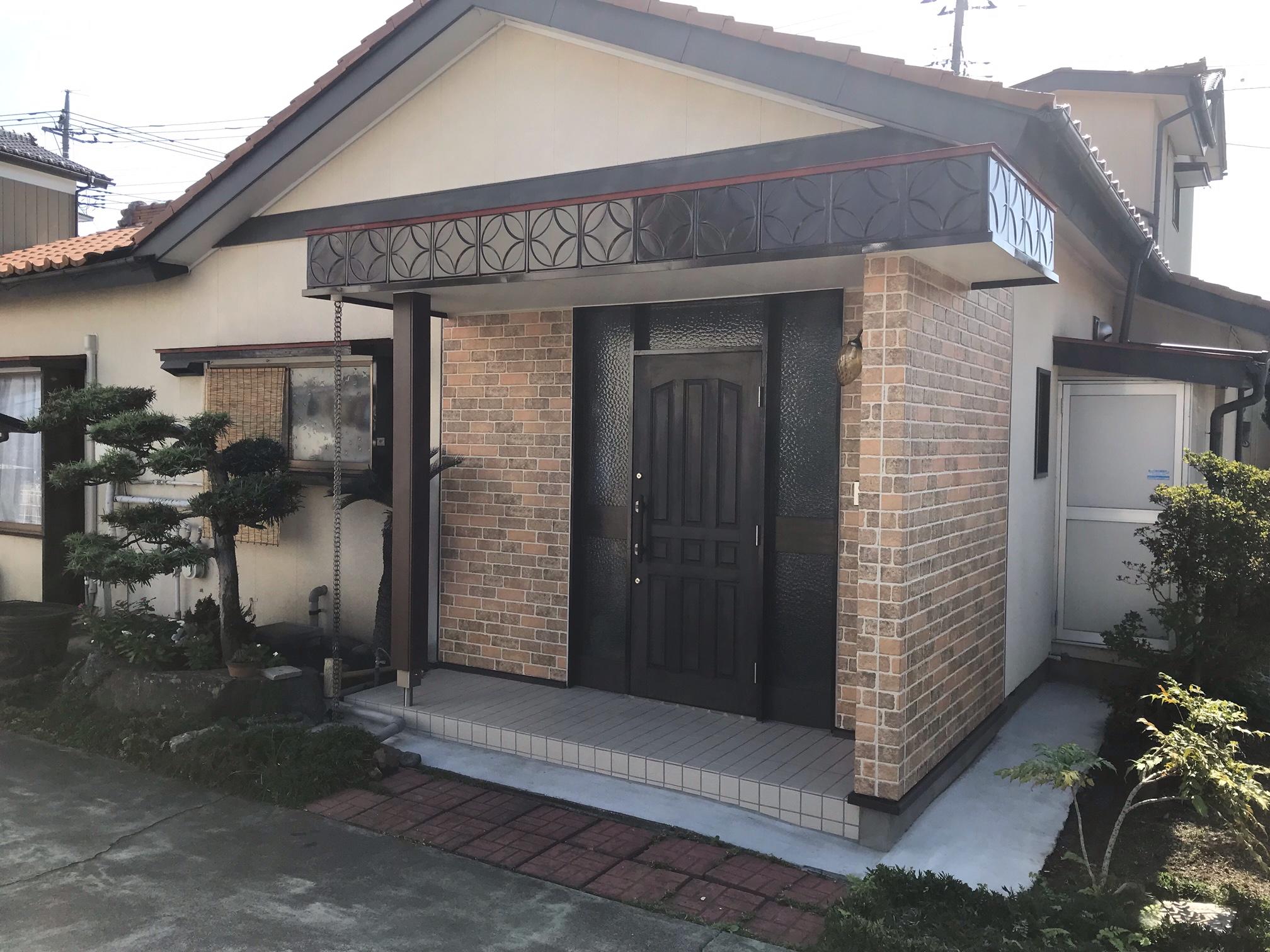 玄関周りの外壁と玄関前のタイルをリフォームしました。 タイルは既存のものをはがし、新たに貼りかえることで、明るくきれいになりました。 外壁も新たに貼り換えたことで、耐水性・耐候性も高くなりました。アンティークレンガ柄にしたことで、さらにおしゃれな重厚感あふれる趣きのある見た目になりました。