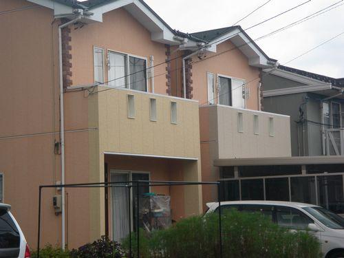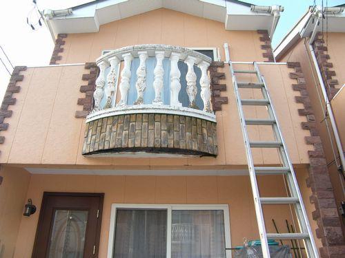 ベランダの雨漏りが原因で手摺が今にも落ちそうでした。建売を買ったそうですが、その業者は倒産したらしく、地元の我が社に依頼がありました。依頼を受けた家のお隣さん宅も、もちろん同じ構造なので、同じ状況になっていました。おせっかいとは思いましたが、遅かれ早かれ、工事はしないといけない状況に見えましたので、声をかけさせていただきました。同時に施工した方が工事費も安くなるとも思ったので。お隣さんも気になっていたらしく、すぐに話がまとまりました。お隣さんとは少し色だけ変えさせて頂きました。これで、一安心です。