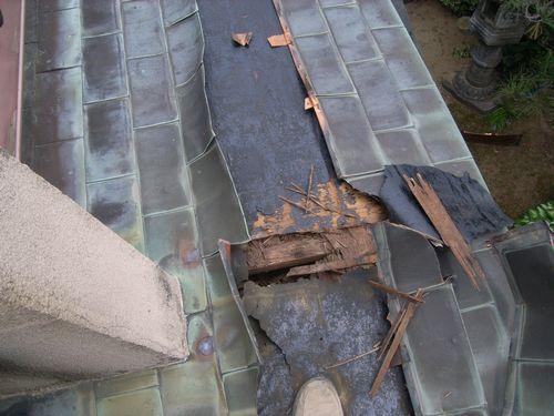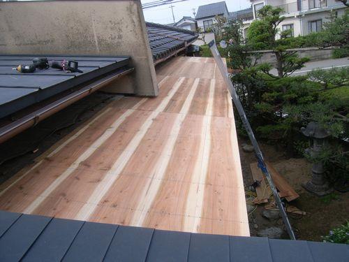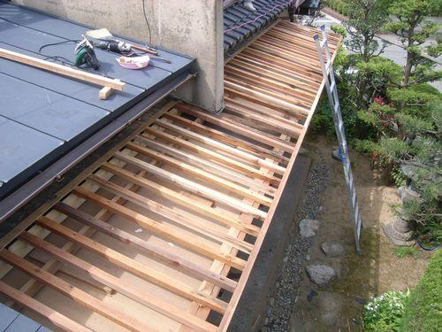土縁の屋根を改修しました。雨漏れが原因でコンパネがぼろぼろになっていました。