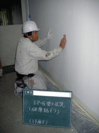 下塗りが終われば、研磨します。でこぼこを取り去って、完全なへいたん面を作ること、