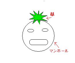 顔のような白のマンホールのちょうどテッペンにふさふさと