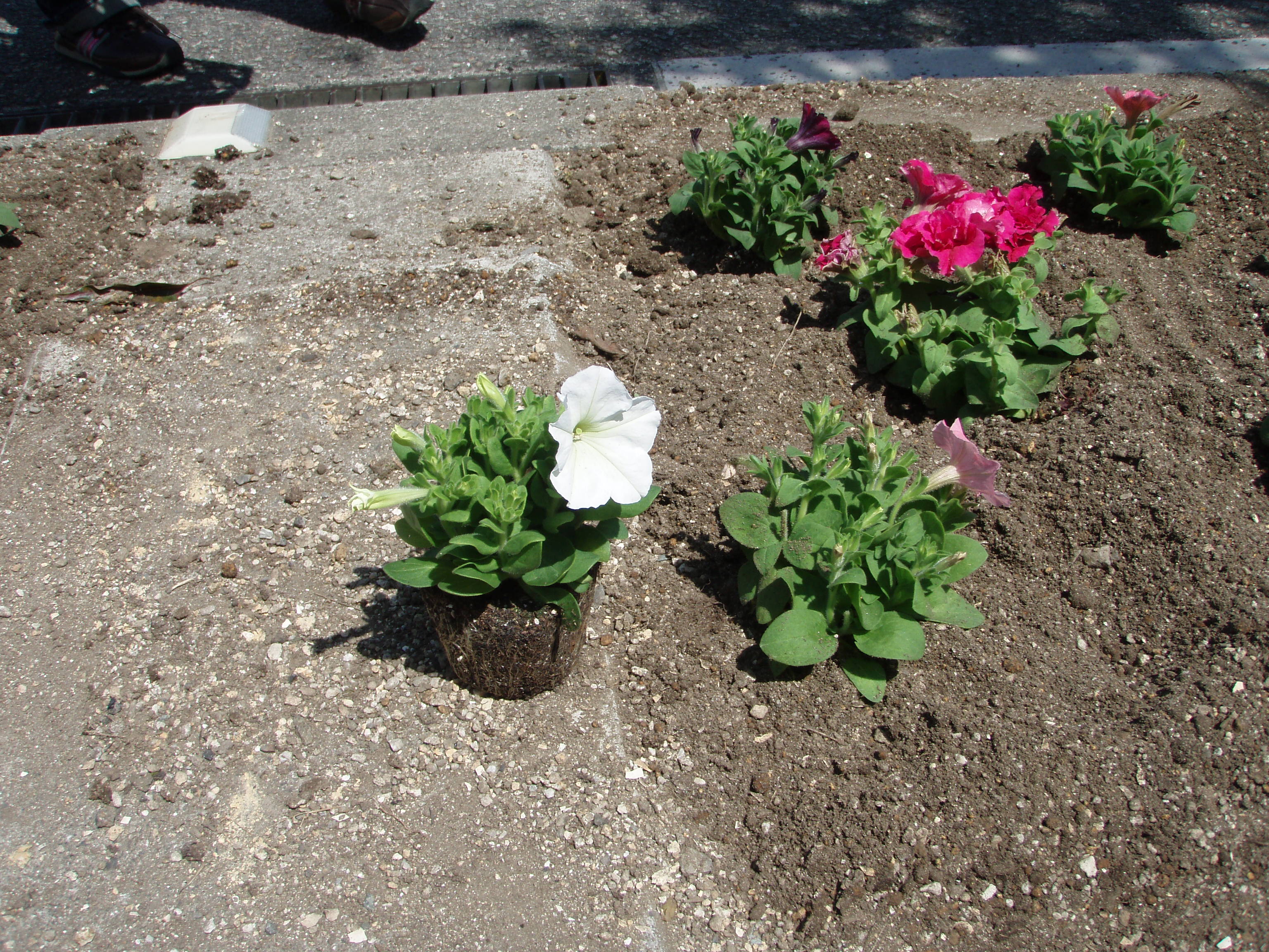 当社前の花壇のペチュニアがグンと成長して、