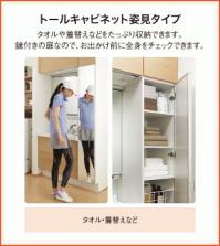 キャビネットには家族の小物やタオルをすっきり収納できます。