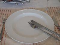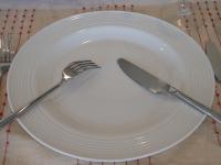 食事終了の時には、食べ終わったらフォークは背を下に、