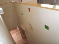 2階へ上がる階段の壁には、ニッチとガラスブロックを埋め込みました。