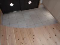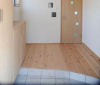 こちらの玄関とリビングの床は無垢の杉板を使用しています。