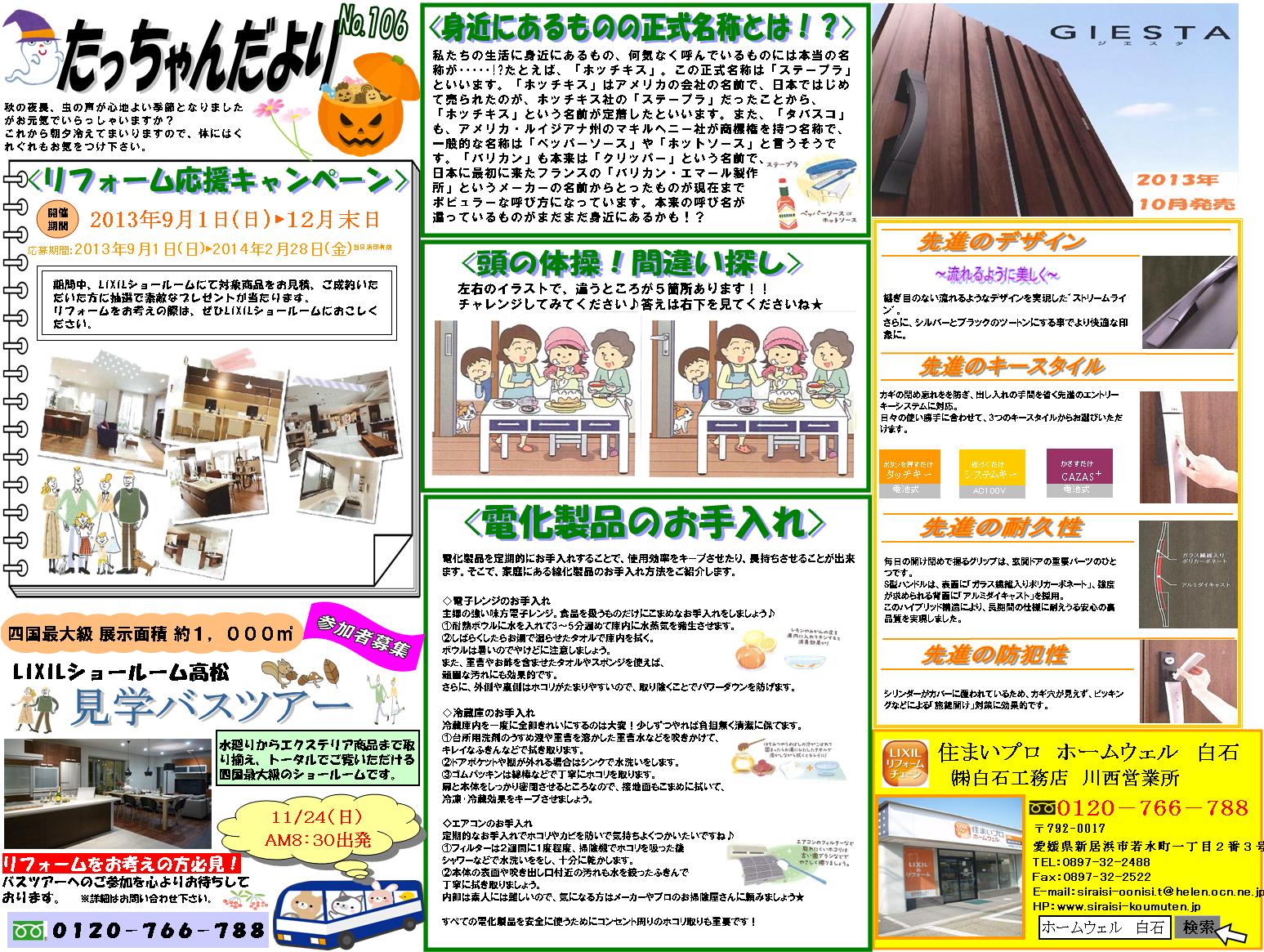 今日は、当社オリジナル情報誌「たっちゃんだより10月号」をご紹介します。