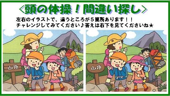 ①男の子のズボンの長さ ②女の子の水筒 ③お父さんのリュックサック