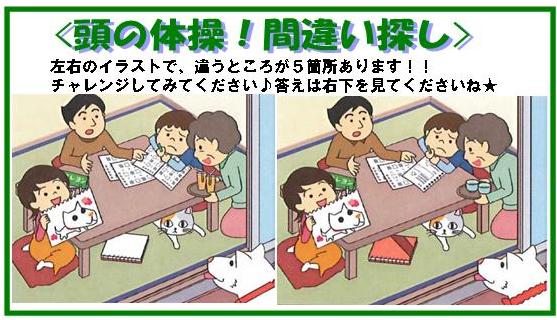 ①男のこのノート ②お父さんの洋服の襟 ③おばあさんの持っている飲み物