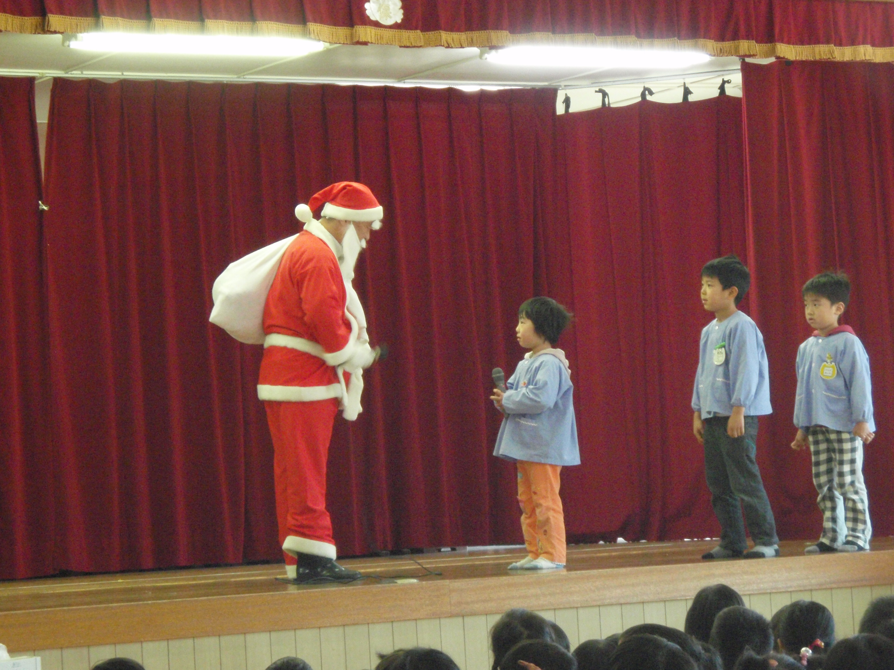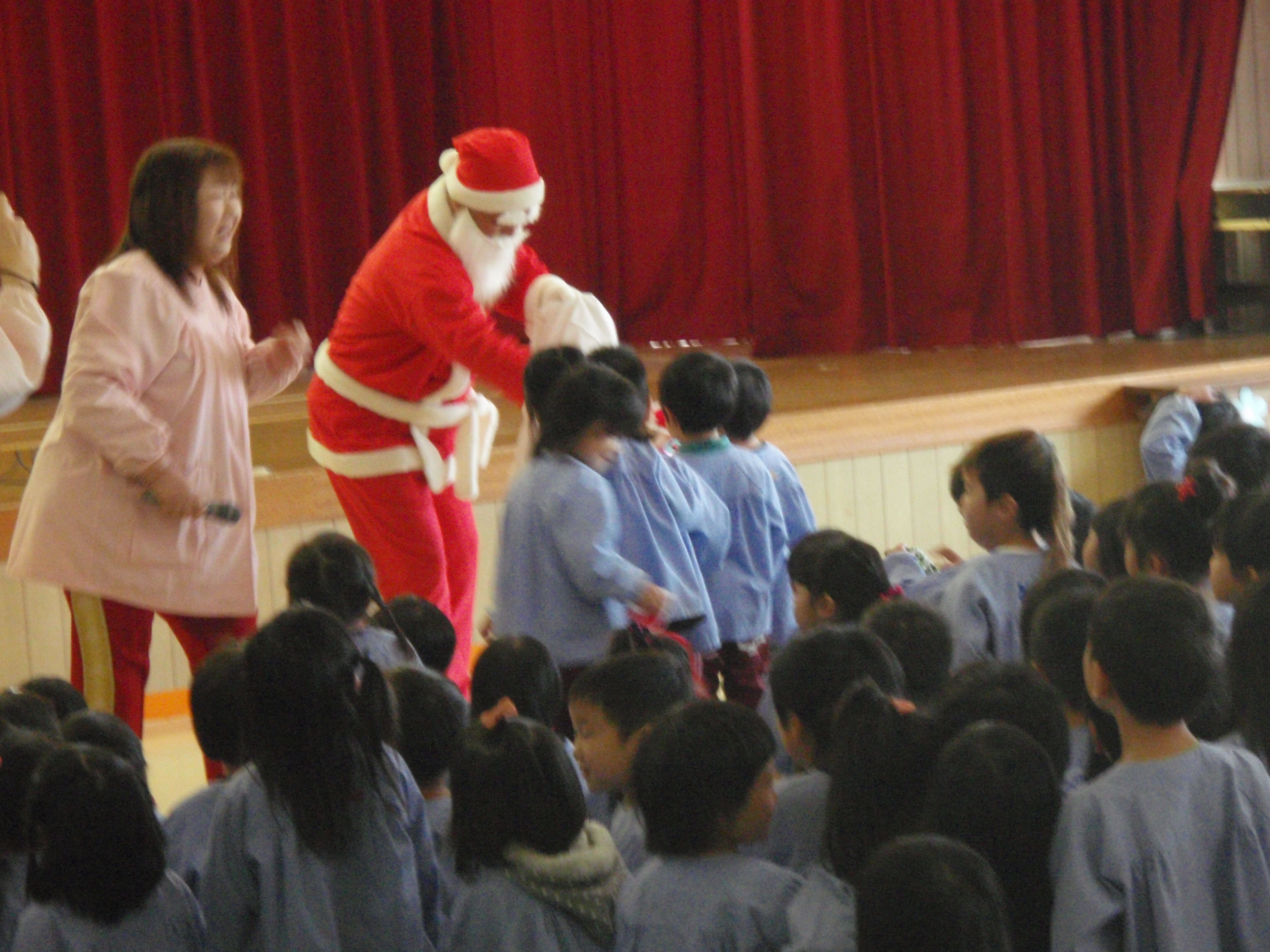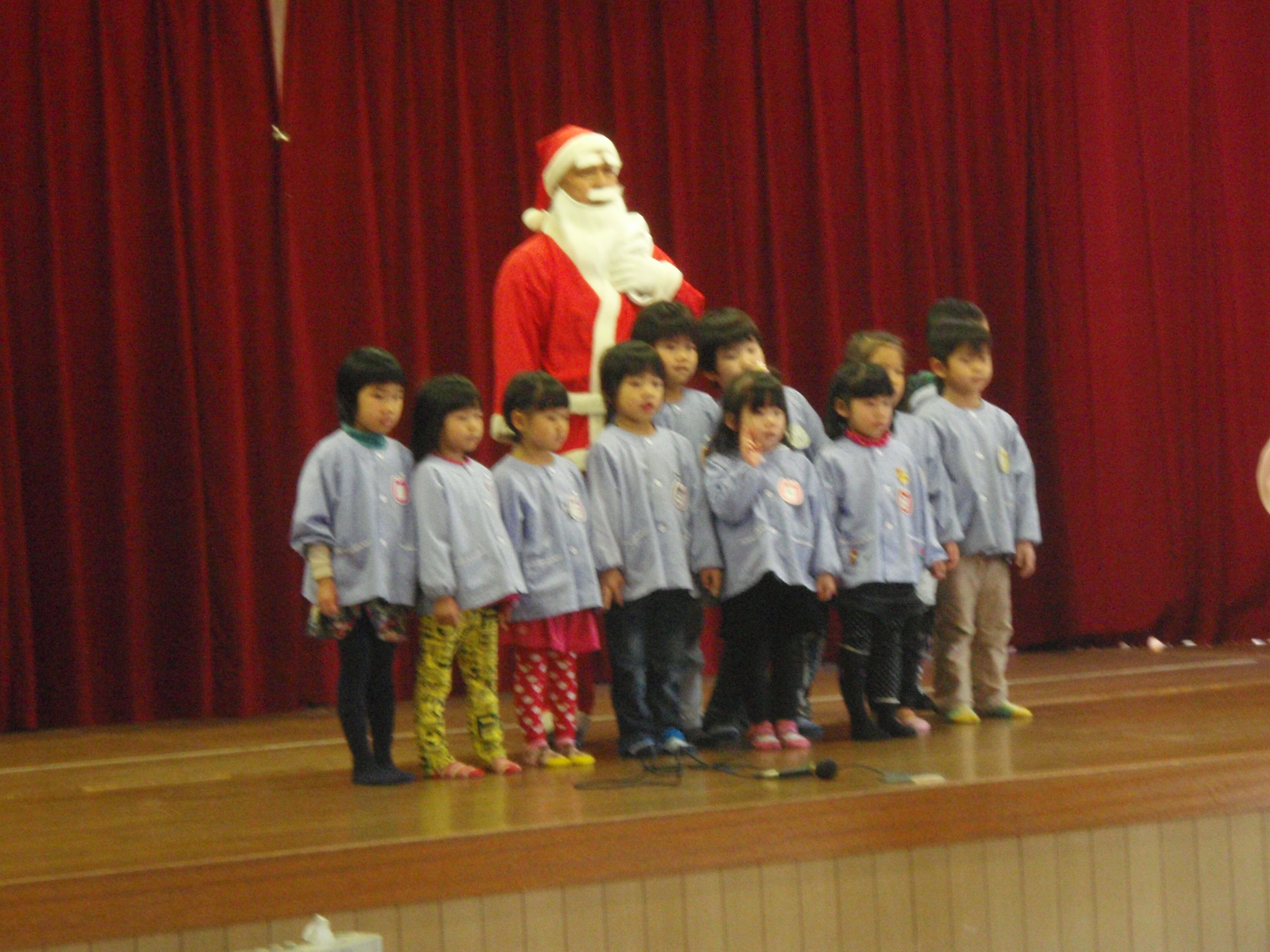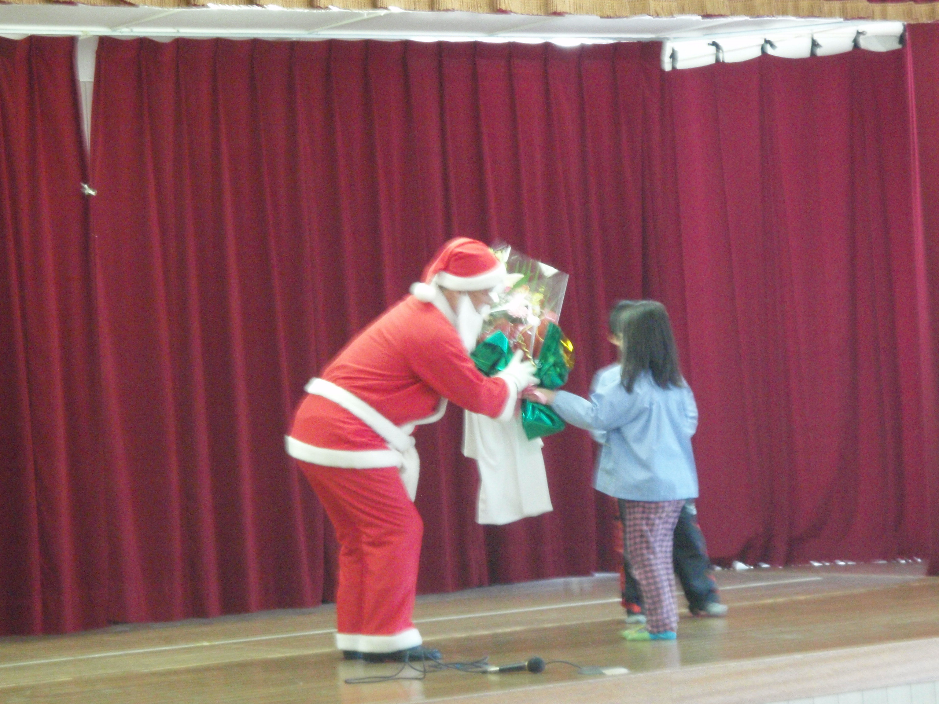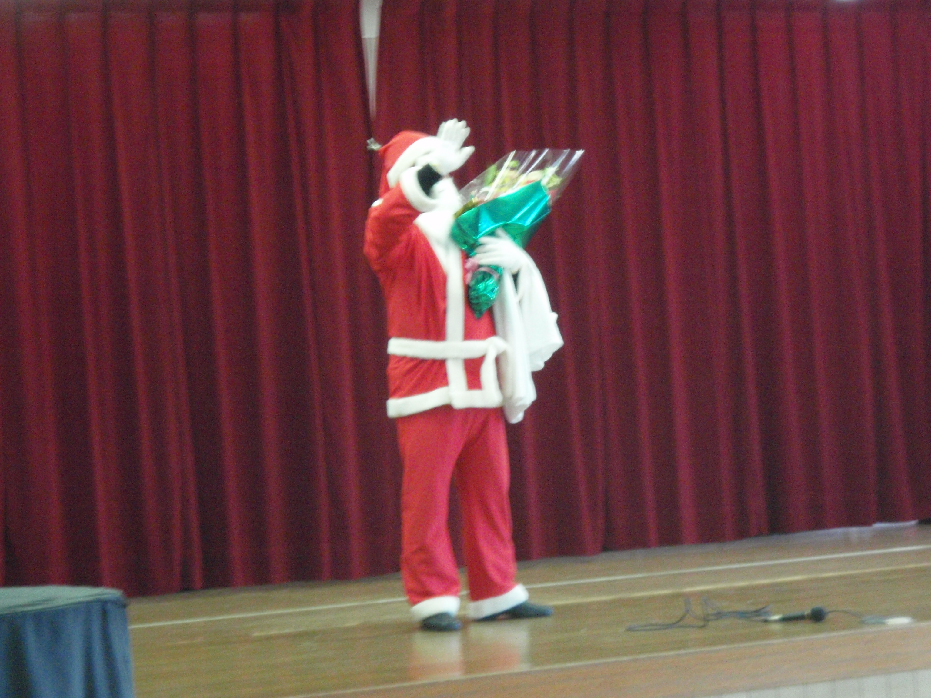 子供たちにプレゼントを配り終えたサンタさん、子供達から花束をもらいました★