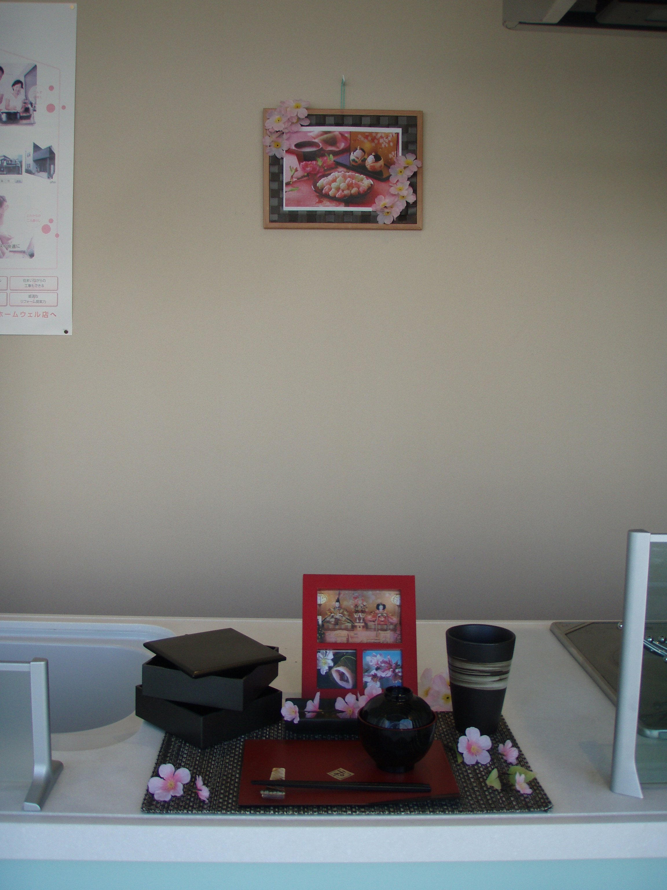 バレンタインも終わったので、当社ショールームも桃の節句用にコーディネイトしました♪