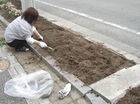 はい!今日はお店の前の花壇にお花✿を咲かせようと