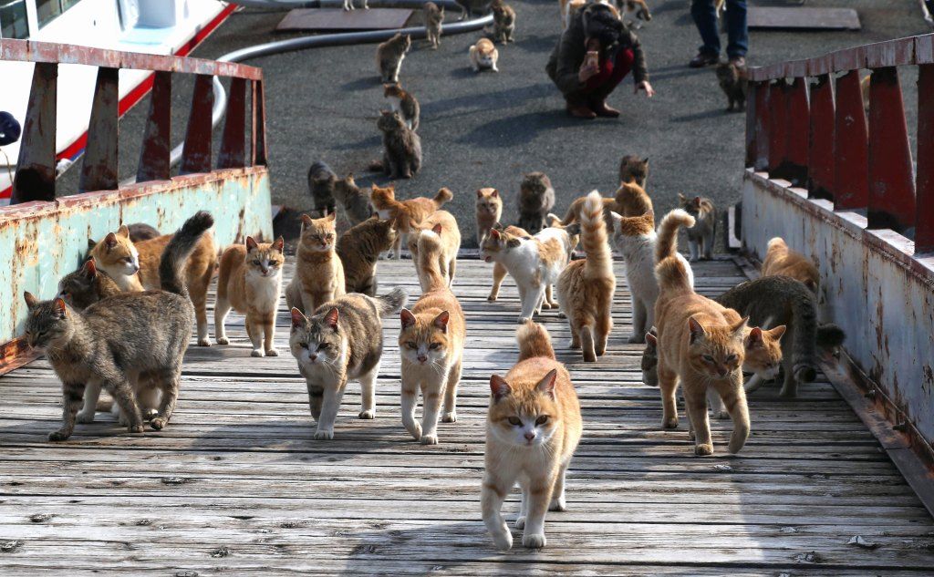 この島には、12人の島民と猫が100匹以上が暮らしています。
