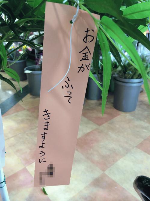 気をよくした娘はスーパーでも短冊を見つけ、「ママまた書いたよ。見て見て」