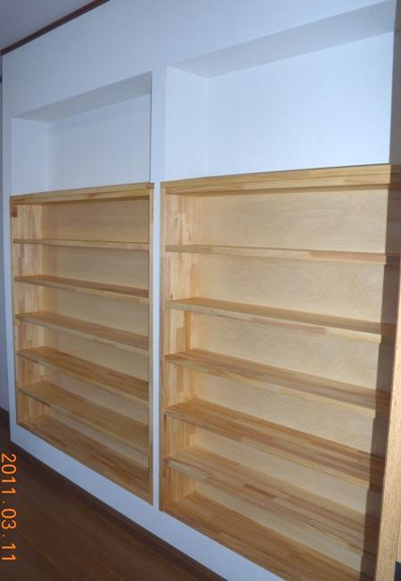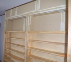 寝室へ入るドアが2つあり、1つは塞がって使っていません。寝室を間仕切り、趣味の部屋と寝室を作りたいとのご要望。寝室を間仕切り、寝室と趣味の部屋にしました。お施主様の趣味であるCD集め用にCD棚を作り、たくさんCDが収納出来るようになりました。工事前は寝室へ入るドアが2つあり、将来部屋をもう1つ作りたいと思っていて取り付けていたドアだったそうで、今回の工事で、寝室を間仕切り2つの部屋を作ったことにより、お施主様のご希望通り、使っていなかったドアも活用出来るようになりました。