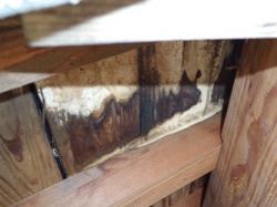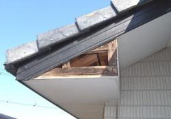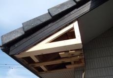 屋根瓦からの雨漏りが原因。雨漏りで、軒天・軒裏のいろんな箇所が腐っていて、釘もきいていない状態でした。軒天を修繕・塗装して、屋根からの雨漏りもなくなりました。※軒天とは・ ・ ・屋根の軒先部分(外壁から出ている部分)の裏側のこと。下から見ると天井に当たるので軒天といいます。