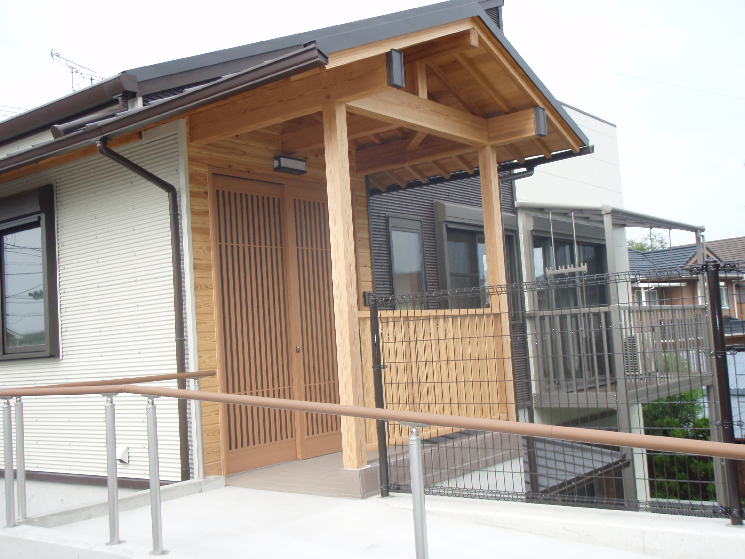 温かみのある木製の玄関は、スロープもついています。