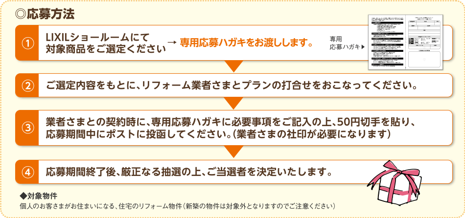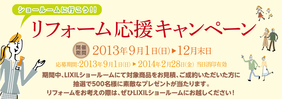 期間中、LIXILショールームにて対象商品をお見積、ご成約いただいた方に抽選で