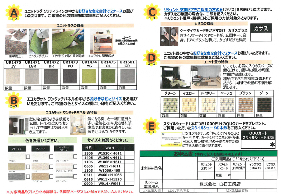 リフォームして頂いた商品に応じて対象のプレゼントをお選びいただく形となります。