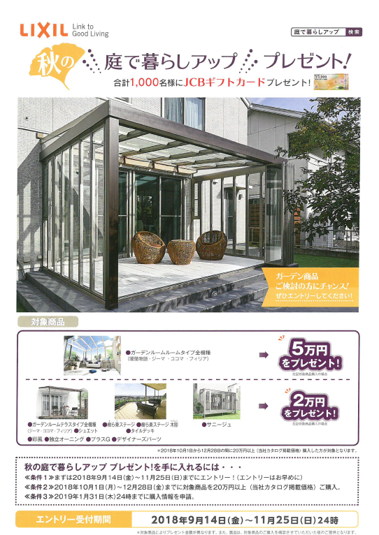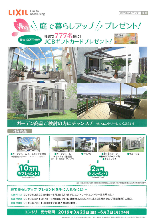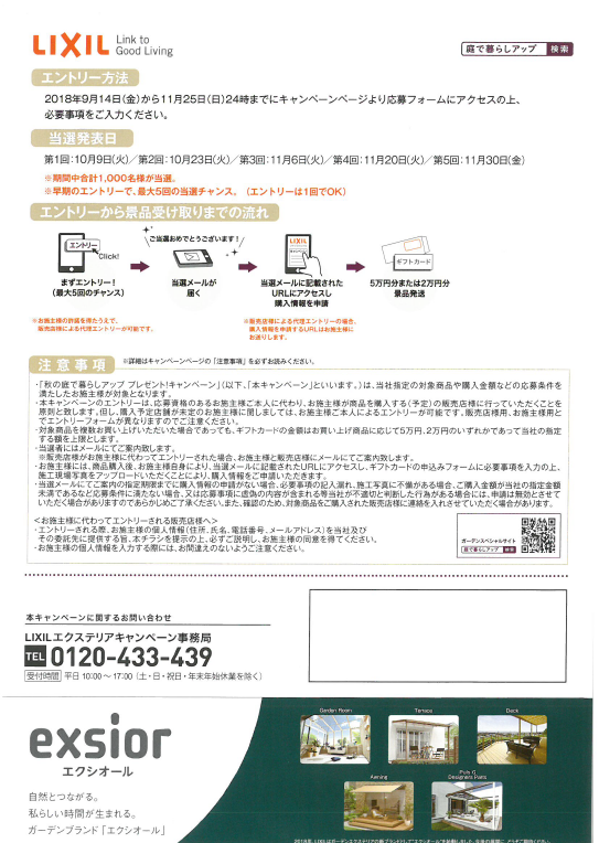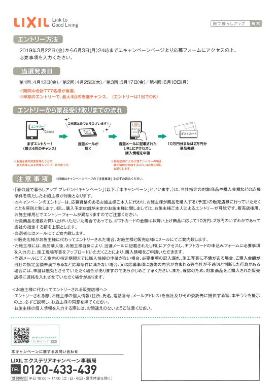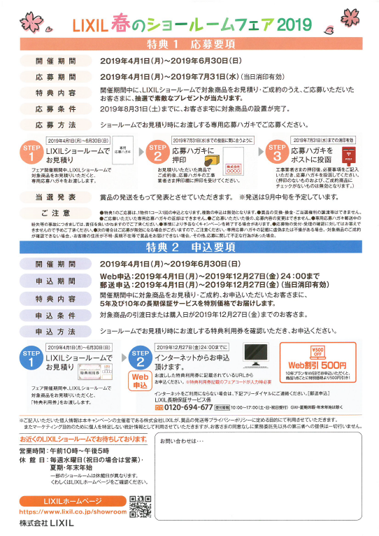 上記期間中にLIXILショールームで対象商品をお見積いただき、専用応募ハガキをお受け取り下さい。