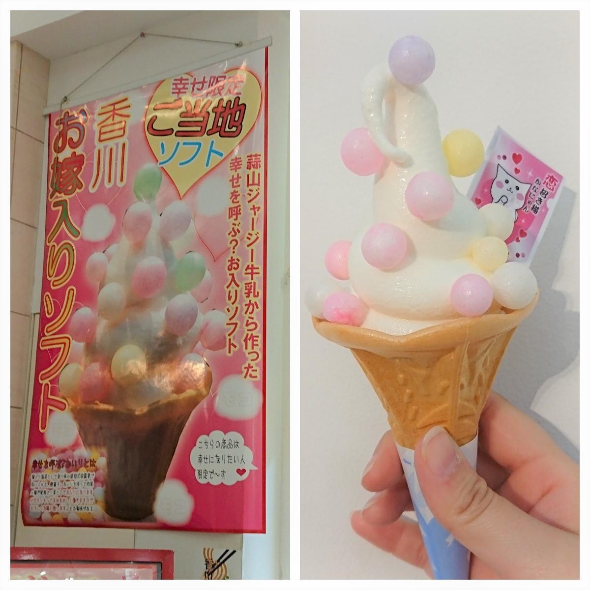 あられが乗っているソフトクリームです。