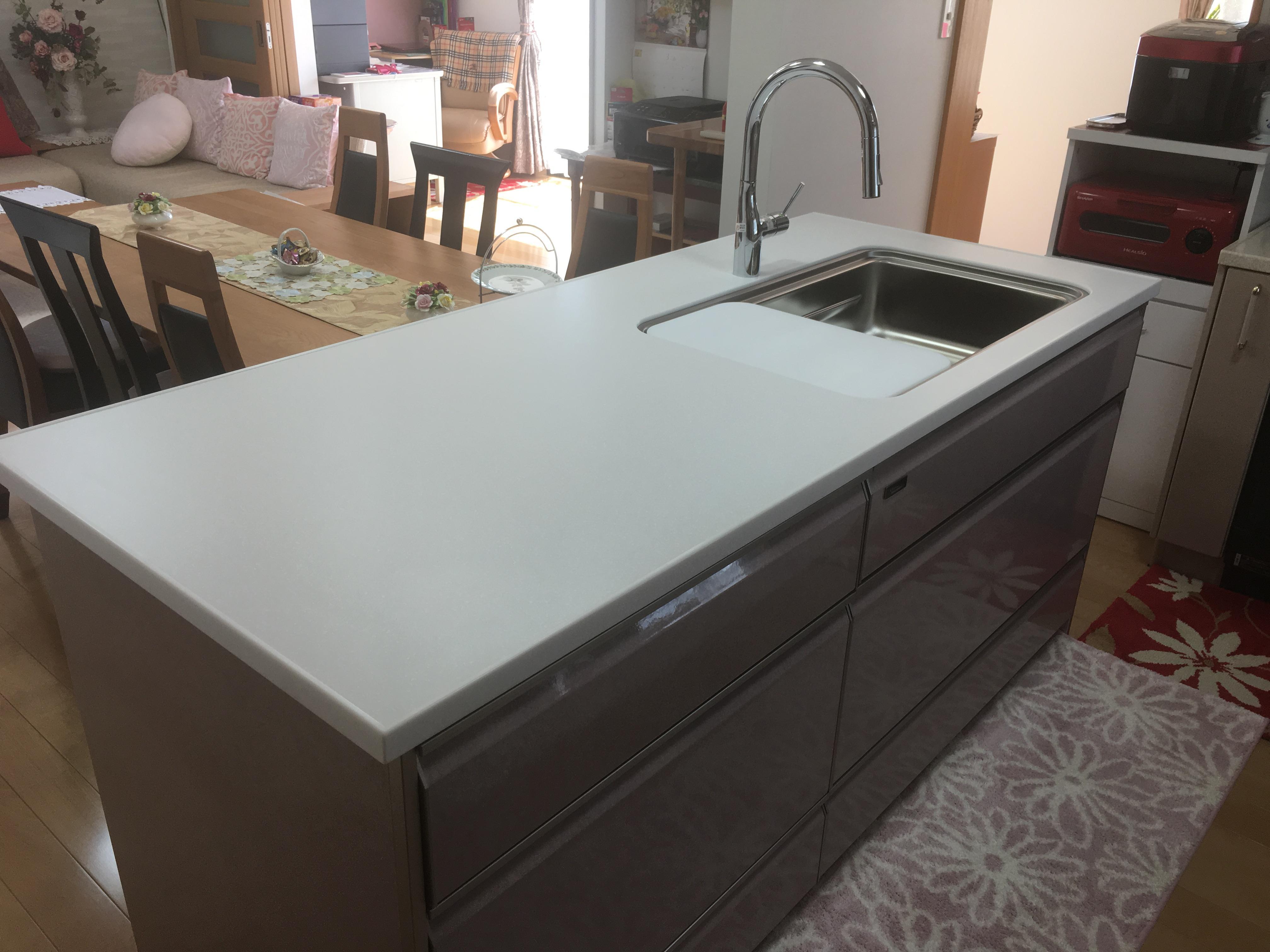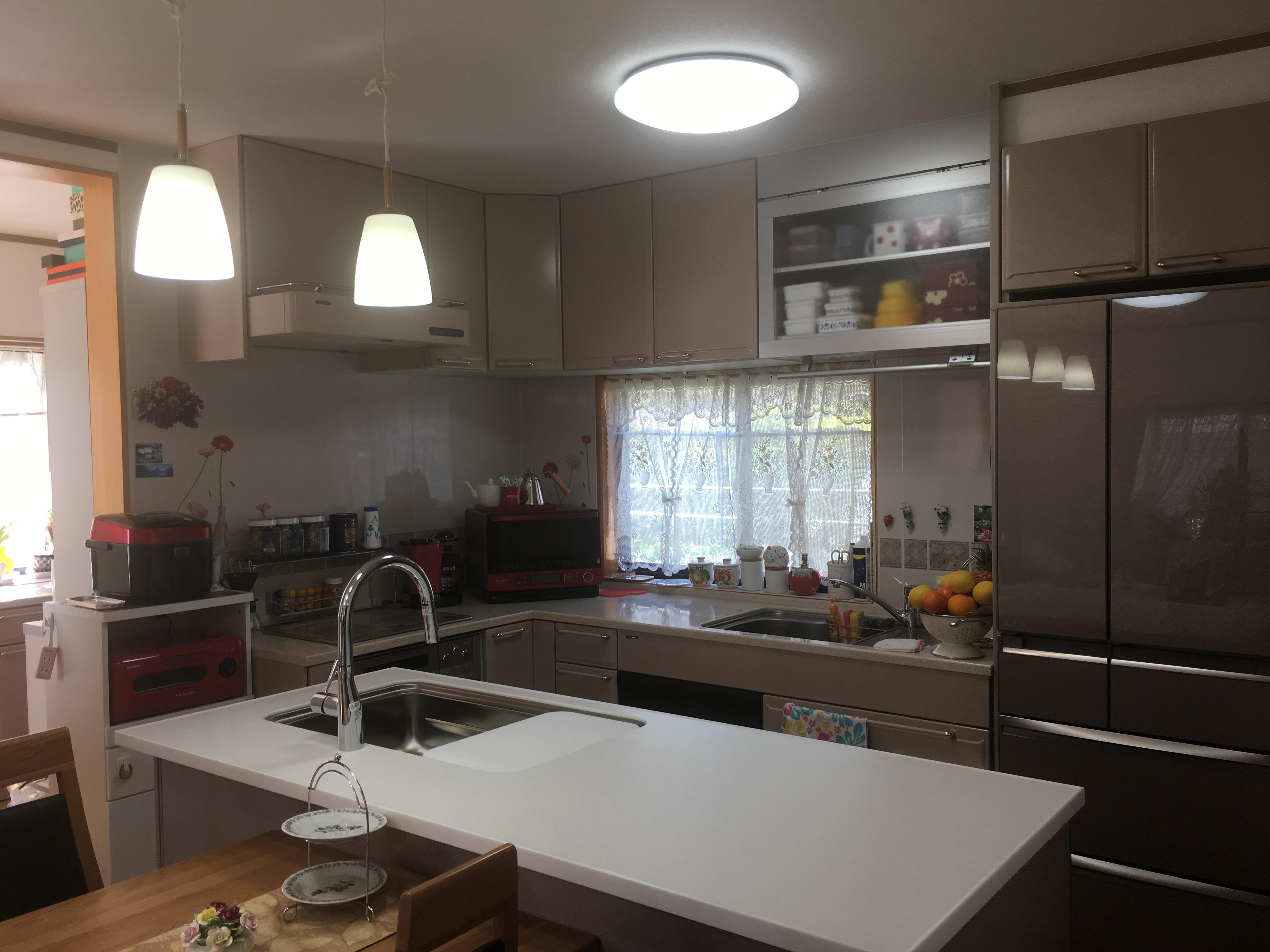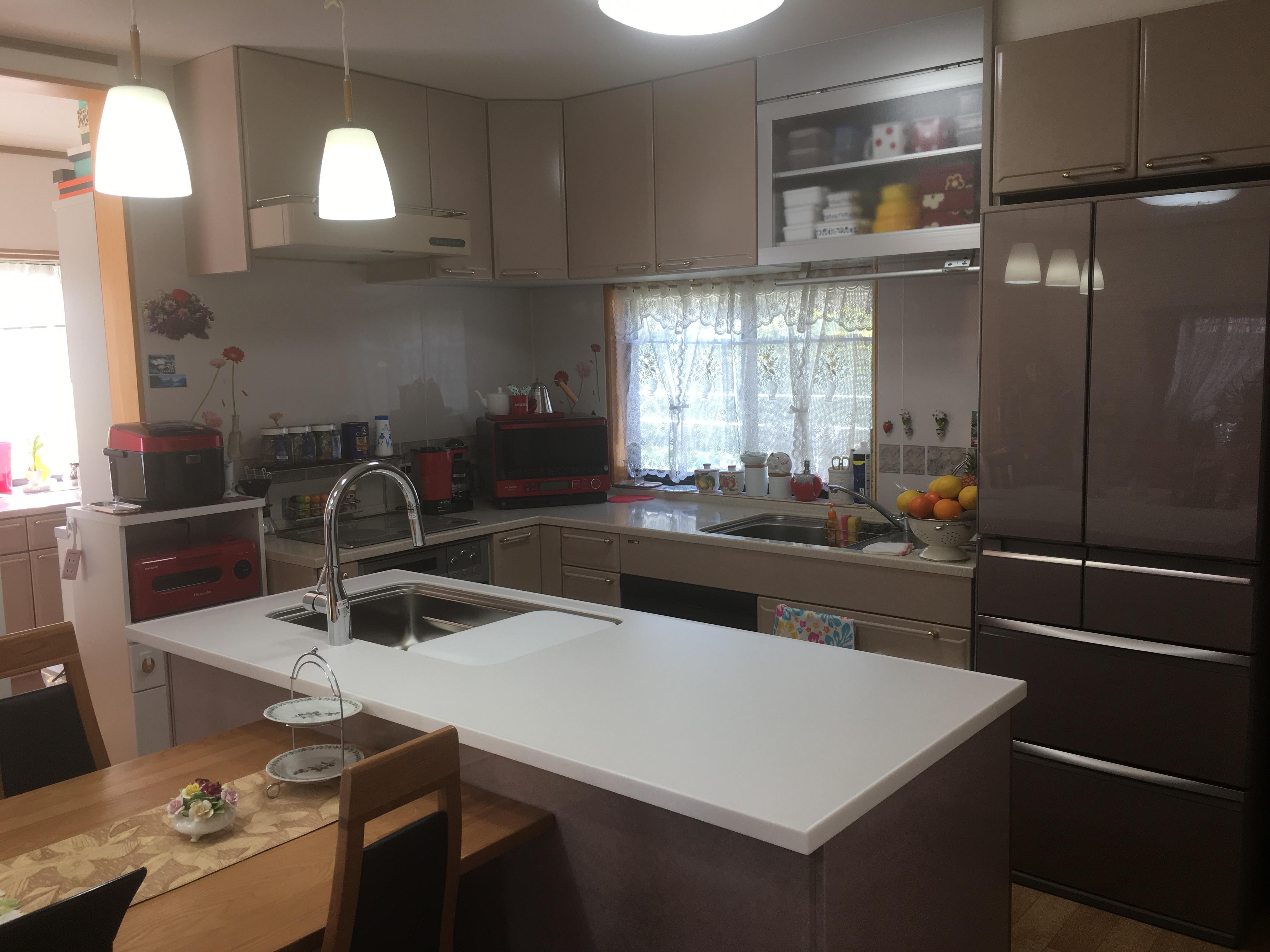 以前対面キッチンをL型キッチンにリフォームしたんですが、人がよく集まる場所なのでシンクを増やし、キッチンとリビングをひとつにしたいと思い今回リフォームをお願いしました。2部屋をつなげオープンになったことで広くてスッキリとし、暗かった床も張り替え部屋全体が明るくなり良くなりました。