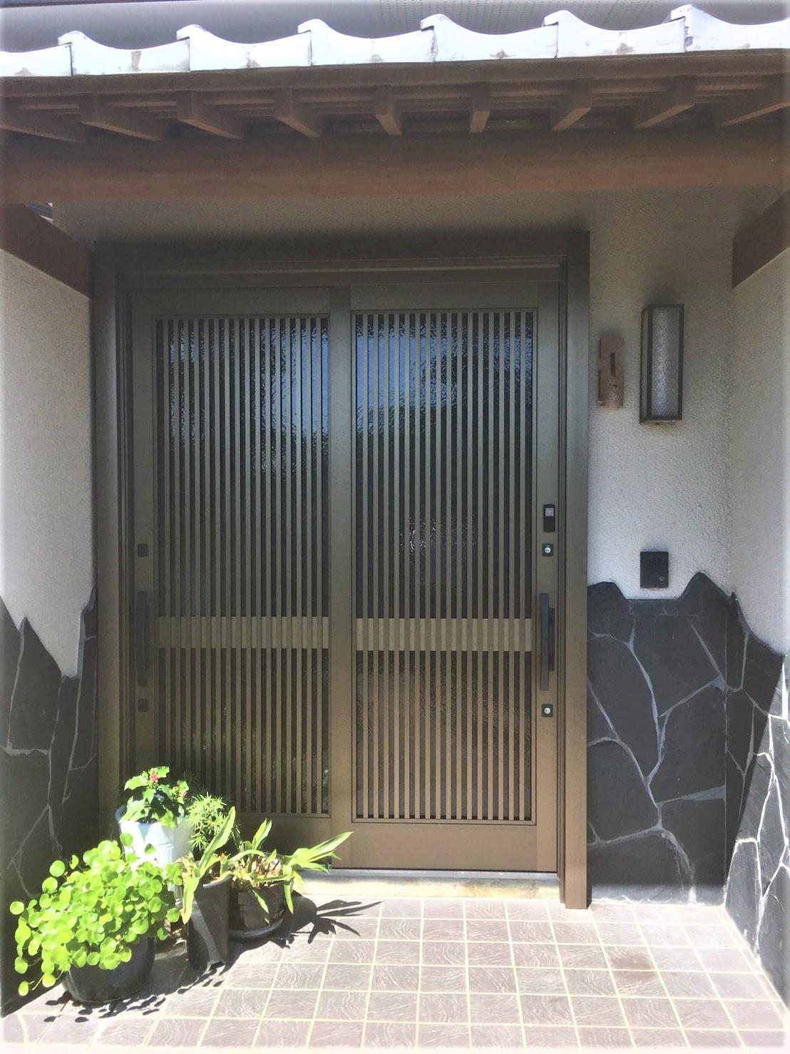 既存の玄関の戸車のレールがスムーズに動かなくなったとの事で、M様より玄関リフォームのご依頼がありました。新しい玄関はランマなしタイプにされスッキリとした印象になりました。リシェントは、既存の枠の上に新しいドアを枠ごと取り付ける「カバー工法」で壁や床を傷める心配もなく1日で完成するのでおススメです。簡易タッチキーはタッチボタンを押すだけなので荷物が多いときにとても便利。リモコンでの操作も可能です。今後はM様にも快適に使用していただけるのではないかと思っております。ありがとうございました。