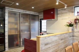 元々ひとつの部屋にキッチンとリビングがあったのを、増築し、リビングとキッチンを別々にしました。キッチンを撤去した部屋にはリビングを、増築した部屋にダイニングキッチンを。システムキッチンは対面キッチンからL型キッチンに新しく変えました。